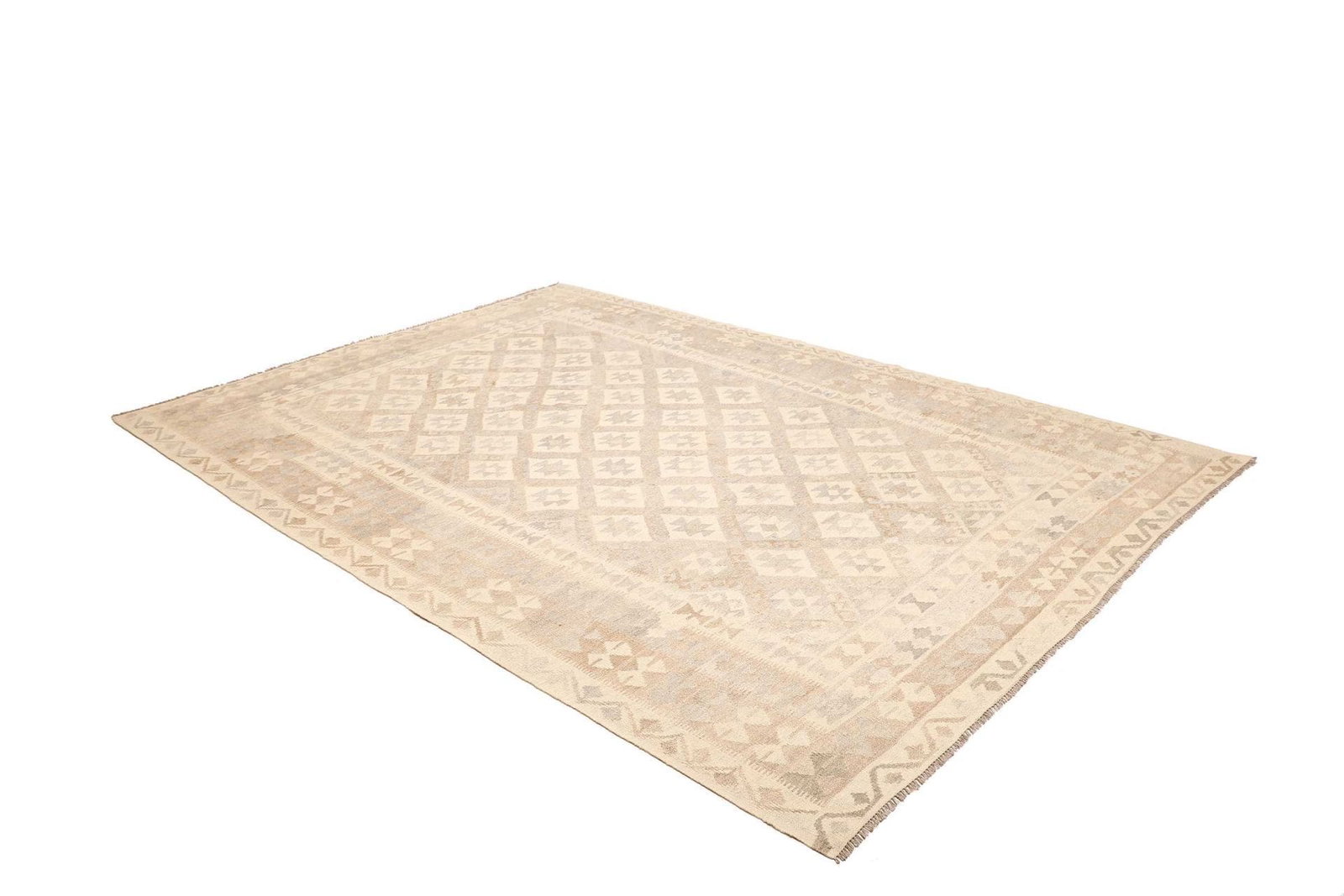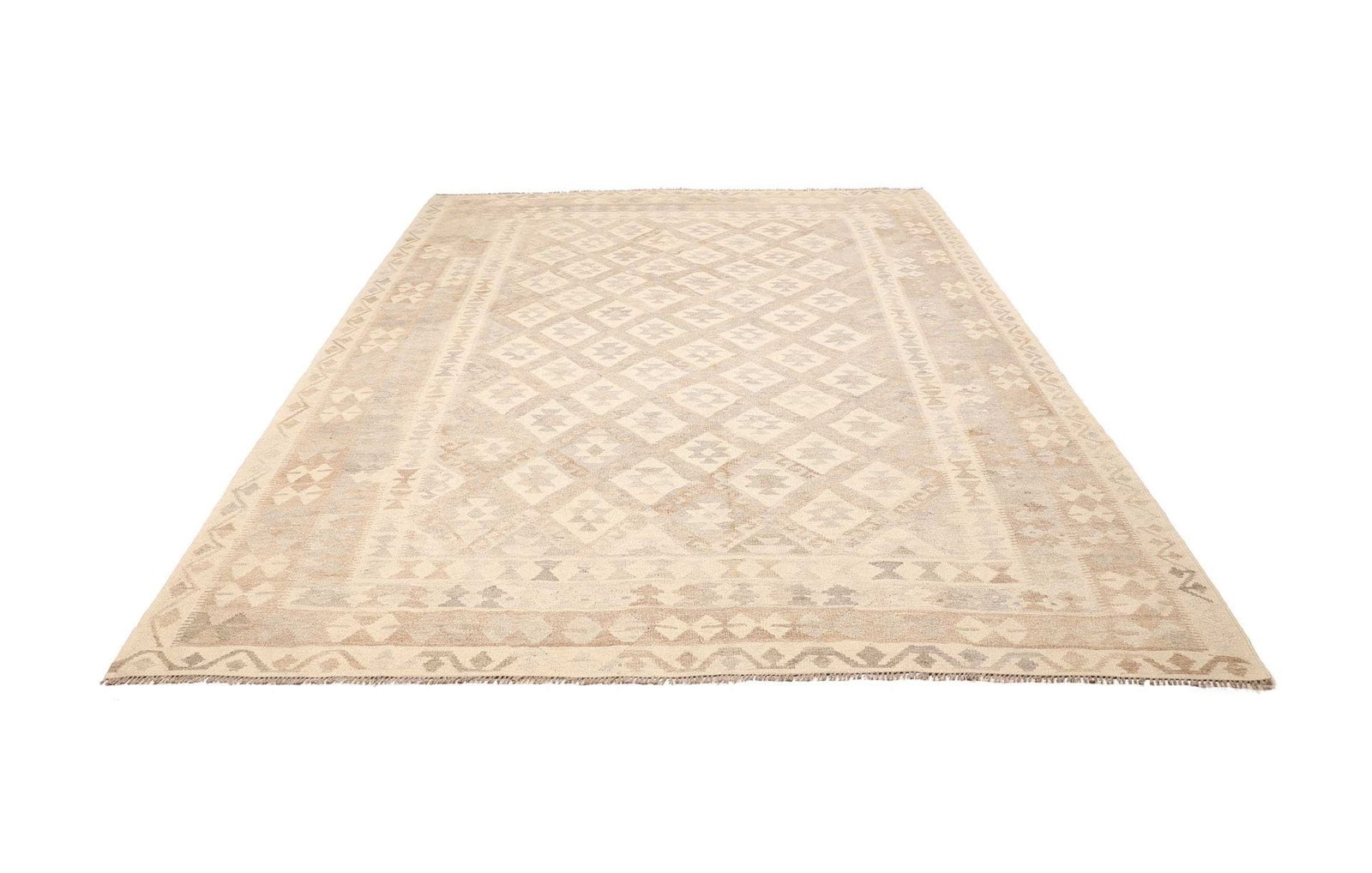 Kelim Teppich 209x282cm, handgewebt, rustikales Flair, Wolle