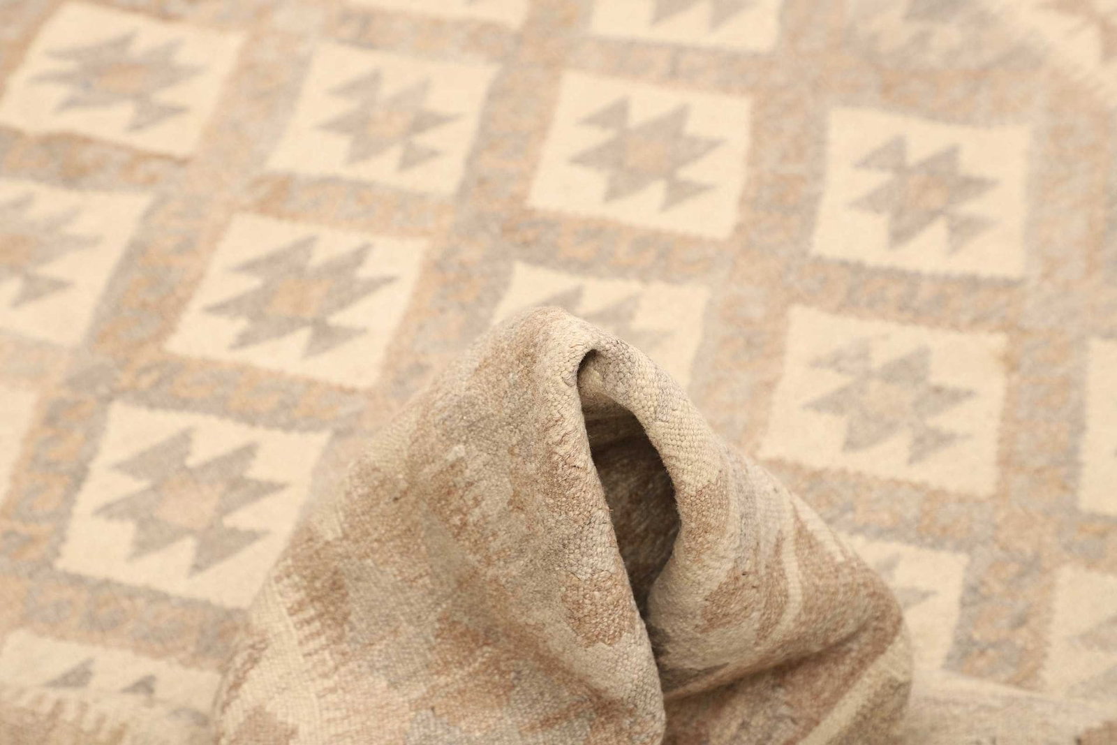 Der Kelim Teppich ist aus reiner Wolle handgewebt, was ihm nicht nur eine angenehme Haptik verleiht, sondern auch für Langlebigkeit und Widerstandsfähigkeit sorgt. Wolle hat die natürliche Fähigkeit, Schmutz abzuhalten und ist darüber hinaus gut isolierend, was bedeutet, dass der Teppich sowohl im Winter als auch im Sommer angenehme Temperaturen fördert. Die handgewebte Technik, die für Kelim Teppiche typisch ist, verleiht jedem Stück seine Einzigartigkeit. Kein Teppich ist wie der andere, was zu einer besonderen Wertschätzung jedes einzelnen Teppichs führt.