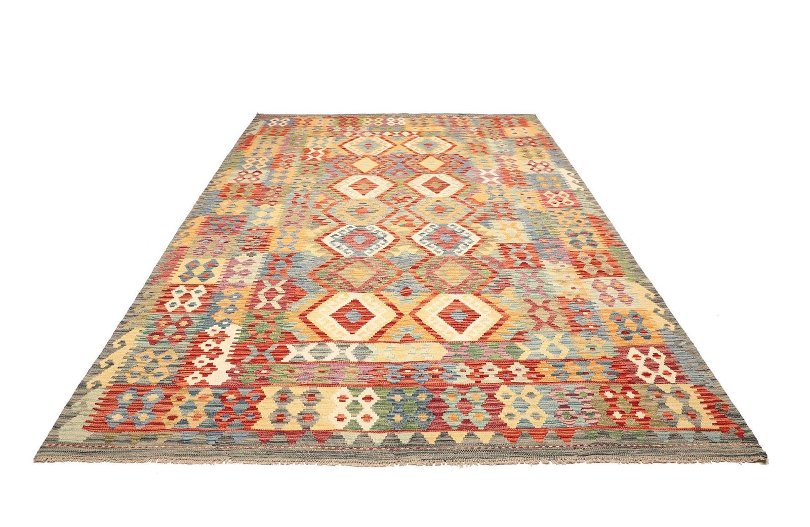Kelim Teppich 210 x 293 cm, handgewebt, rustikales Flair, Wolle