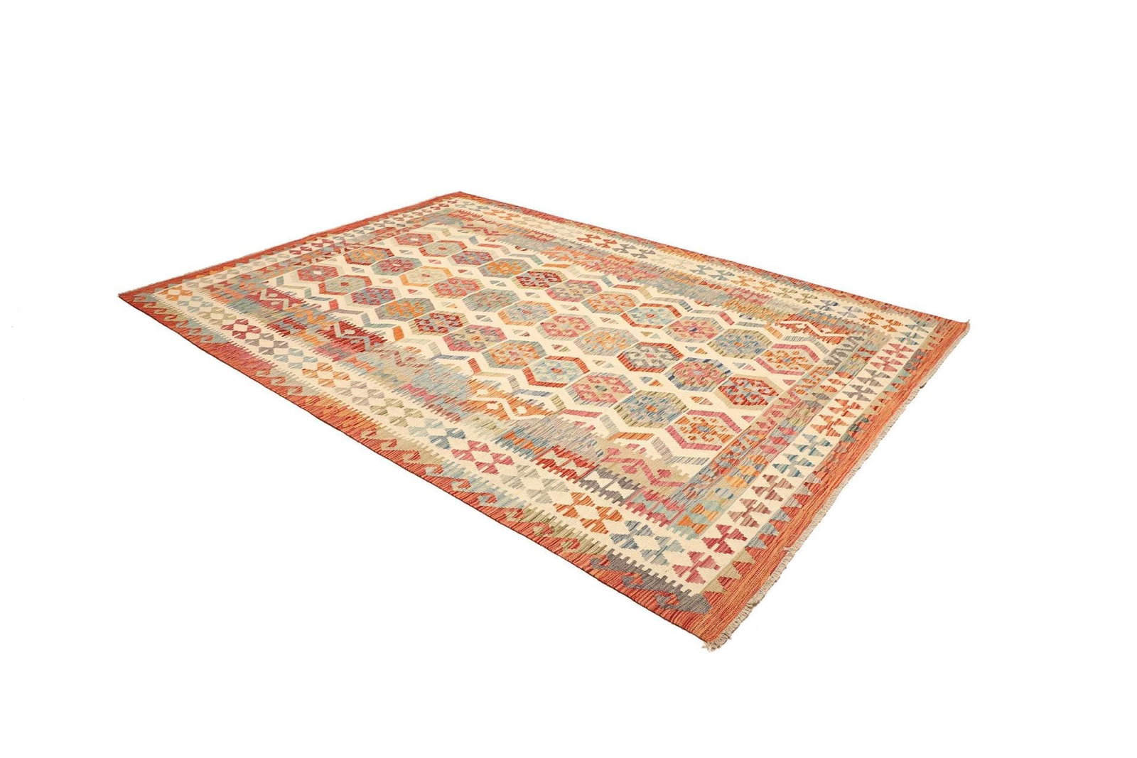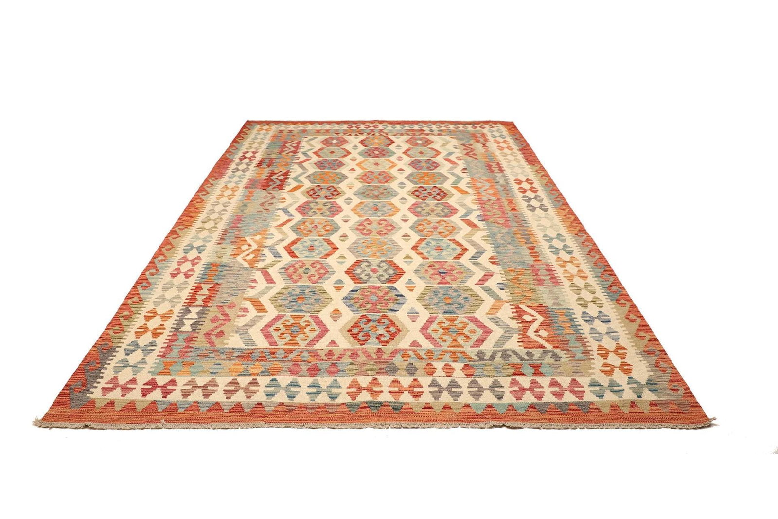 Kelim Teppich 210 x 296cm, handgewebt, rustikales Flair, Wolle