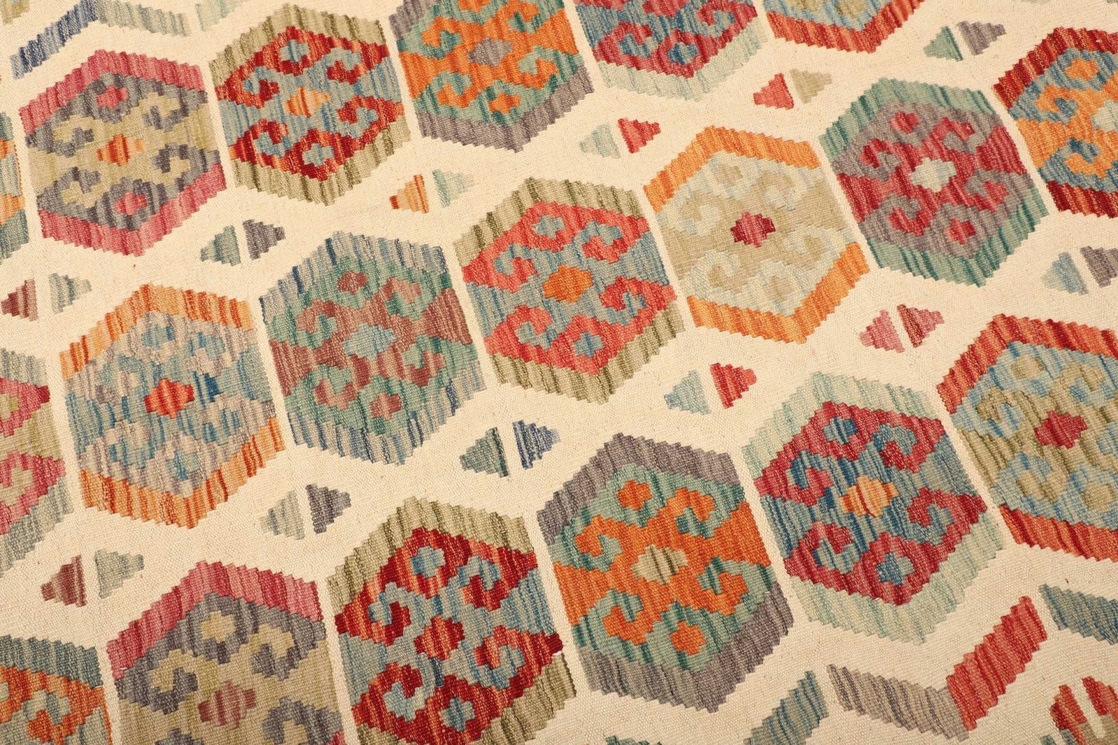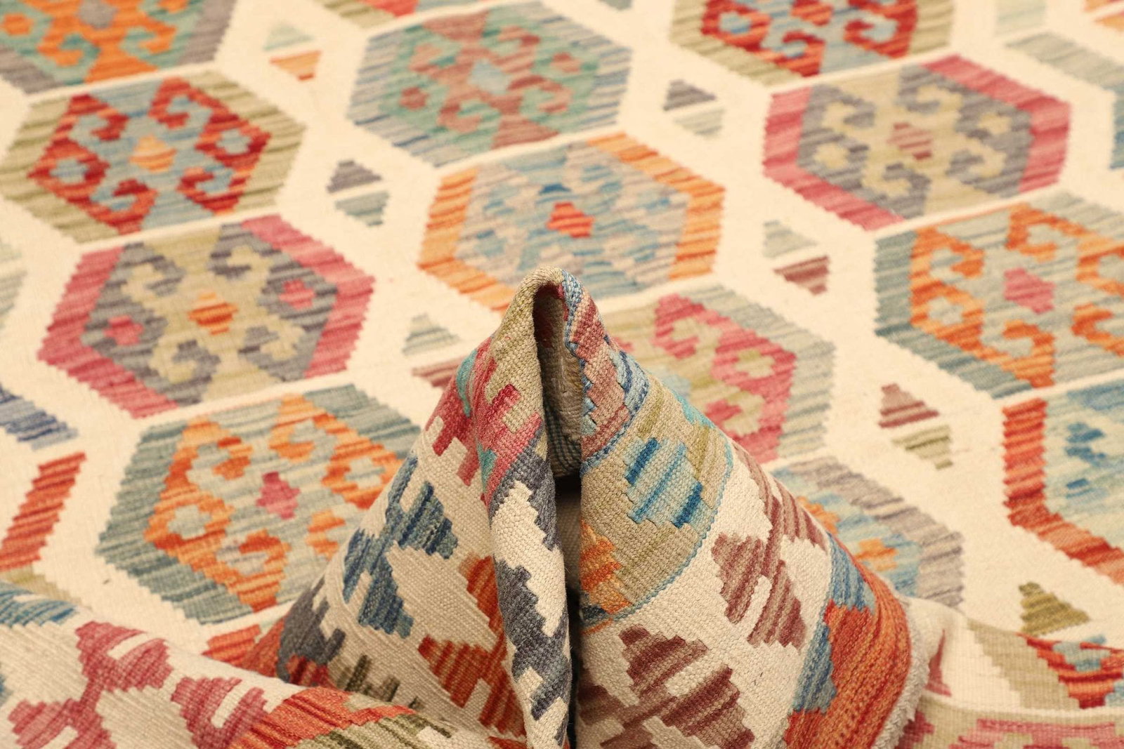 Ein herausragendes Merkmal des Kelim Teppichs ist seine Vielseitigkeit. Durch das handgewebte Design und das hochwertige Wollmaterial ist er geeignet für stark frequentierte Bereiche, da er äußerst robust ist. Darüber hinaus sorgt der Teppich für eine warme und einladende Atmosphäre, die jeden Raum lebendig macht. Die natürliche Schattierung und die individuelle Gestaltung verleihen jedem Teppich eine besondere Note und machen ihn zu einem Unikat.