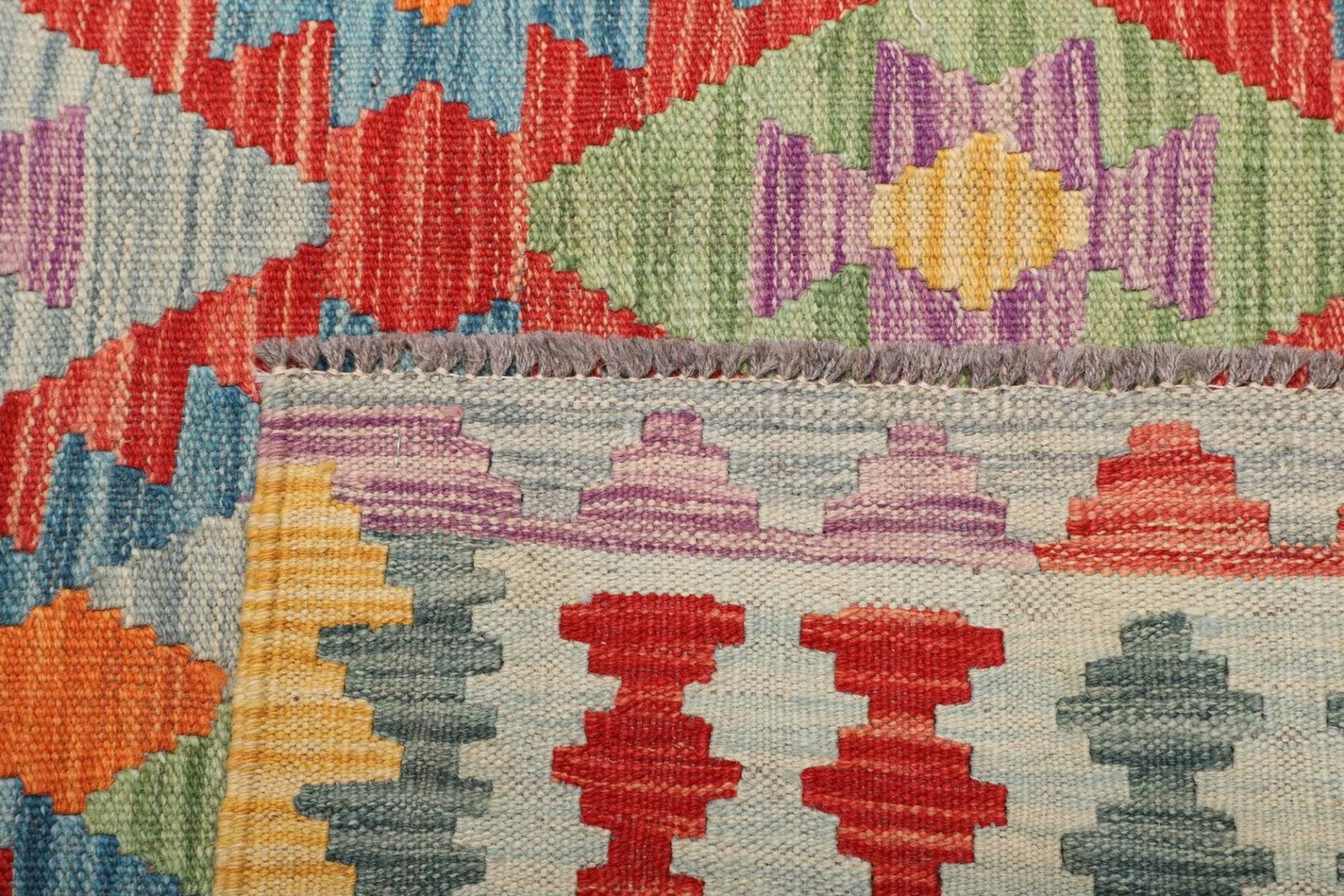 578$ In den WarenkorbKelim 215 x 144 cm – Handgewebt mit identischem Muster auf Vorder- und Rückseite – Orientteppich