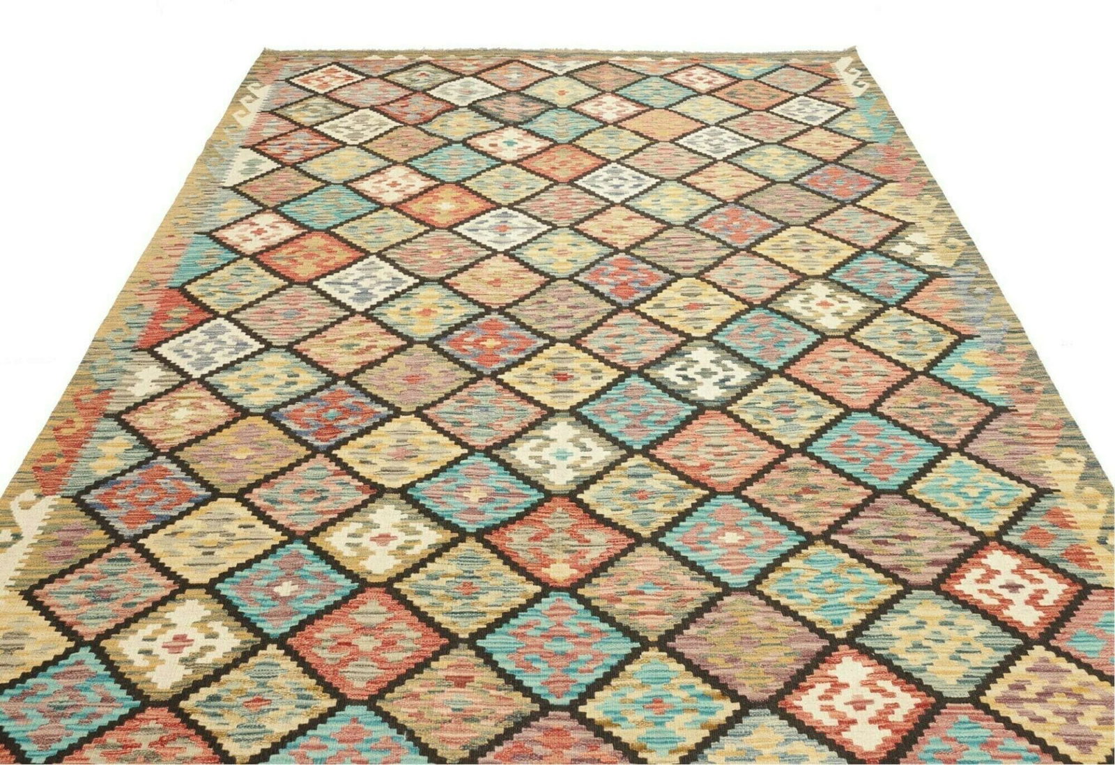 Kelim Teppich 211 x 289 cm, handgewebt, rustikales Flair, Wolle