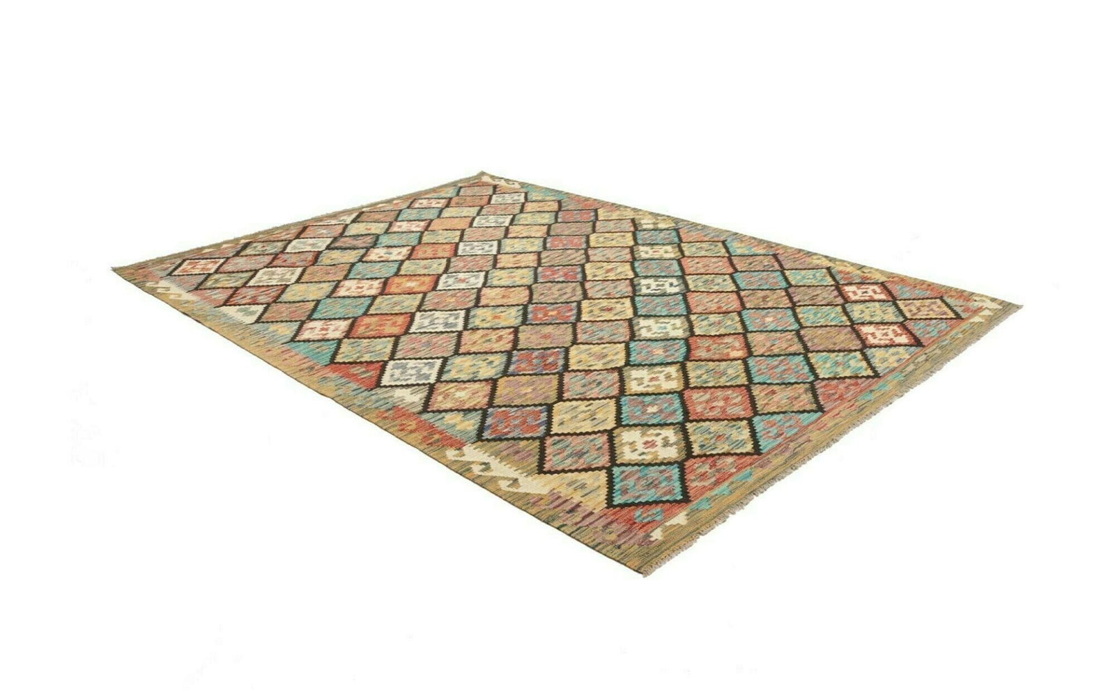 Der Kelim Teppich präsentiert ein ansprechendes und rustikales Design, das eine Vielzahl von geometrischen Mustern und lebendigen Farben umfasst. Diese Muster sind oft inspiriert von der Natur und dem Alltagsleben in den Herkunftsregionen. Die Kombination aus warmen und erdigen Farbtönen sorgt dafür, dass der Teppich in nahezu jede Inneneinrichtung passt – vom rustikalen Landhausstil bis hin zu modernem Ambiente.