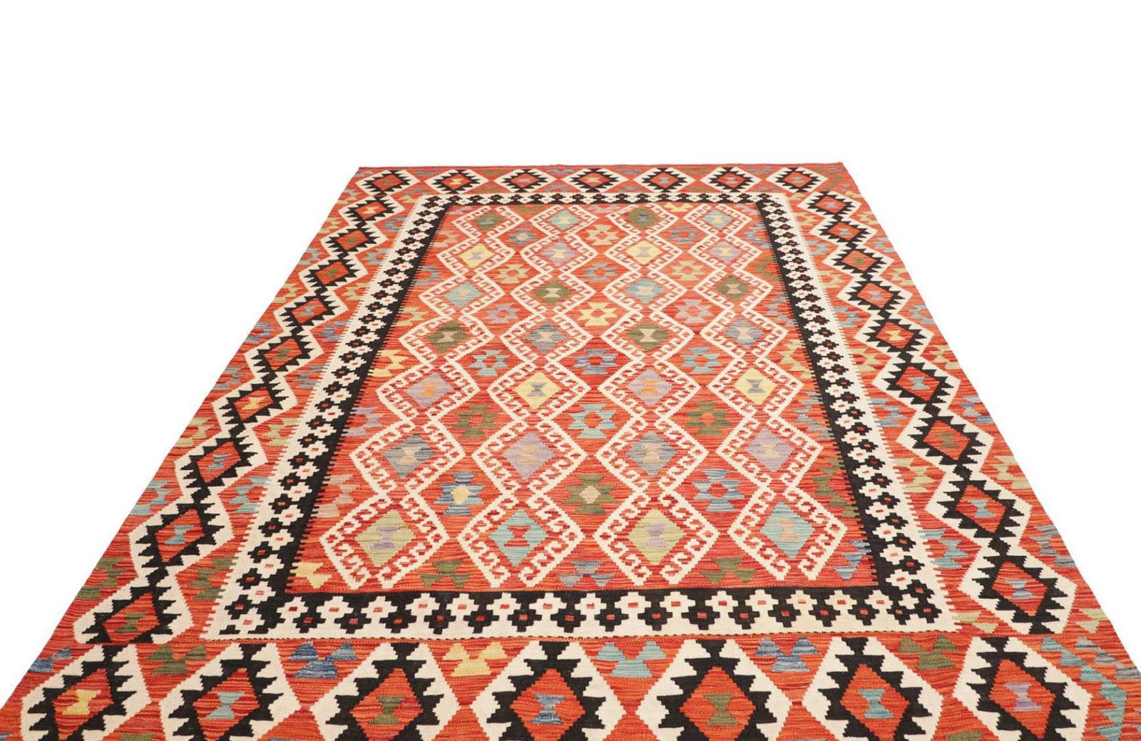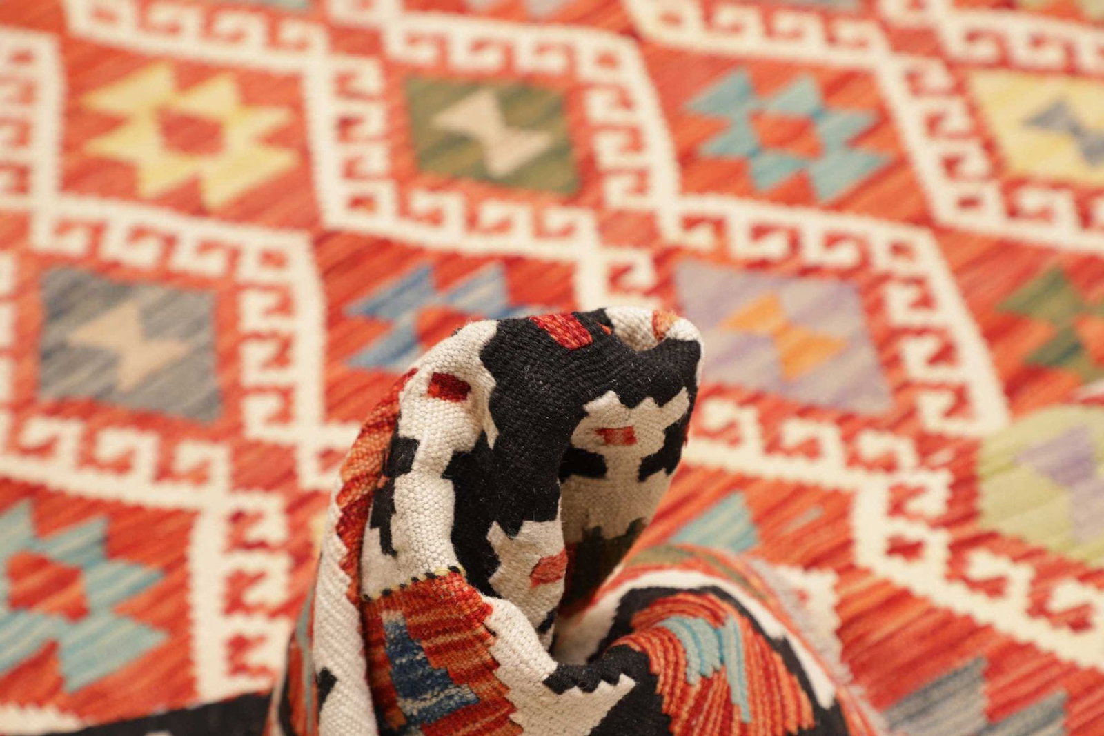 Die Muster und Designs von Kelim Teppichen sind vielfältig. Sie können sowohl geometrische als auch florale Elemente umfassen, die oft in kräftigen Farben und harmonischen Kontrasten gestaltet sind. Der dünne Flor und das rustikale Flair passen sich hervorragend an moderne Wohnstile an und bieten eine angenehme Wärme und Wohnlichkeit. Die Verwendung von Schurwolle sorgt für eine weiche Haptik und trägt zur Regulierung der Luftfeuchtigkeit in Innenräumen bei.