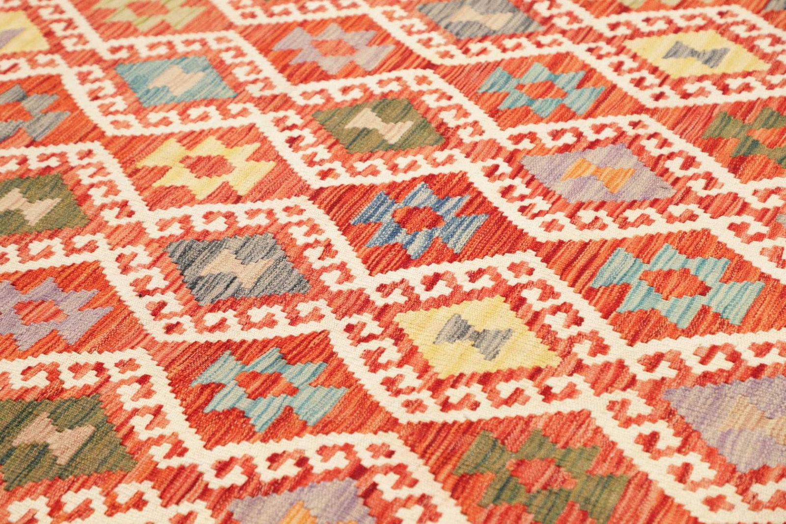Typische Materialien für Kelim Teppiche sind 100% Schurwolle für den Flor sowie Baumwolle für die Kette. Diese Materialien tragen wesentlich zur Langlebigkeit und zur angenehmen Haptik der Teppiche bei.