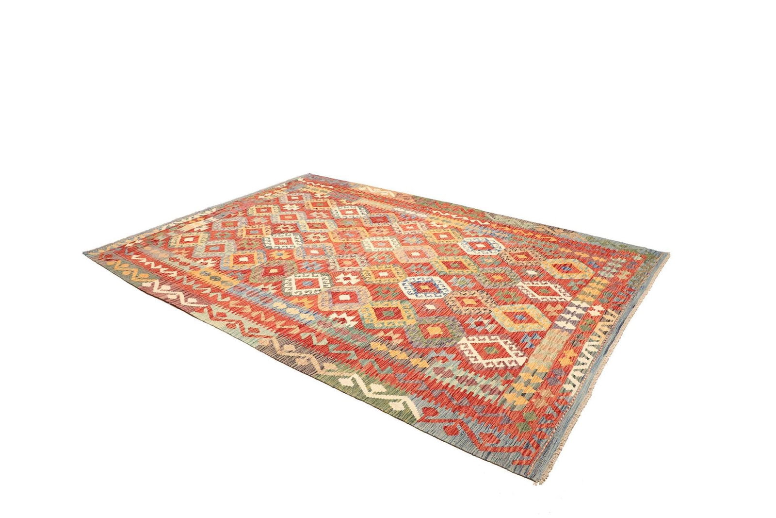 Kelim Teppich 211 x 298cm, handgewebt, rustikales Design