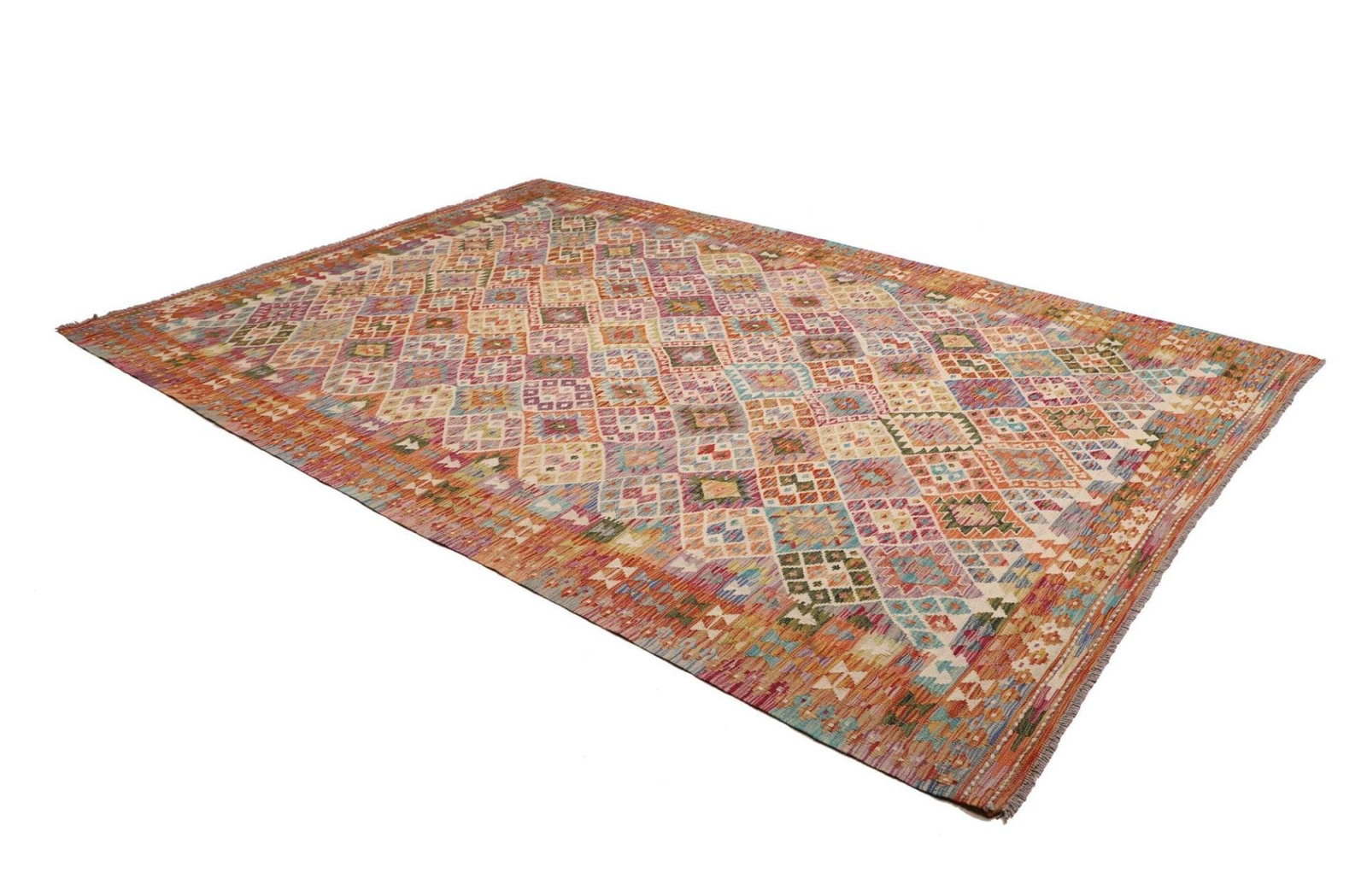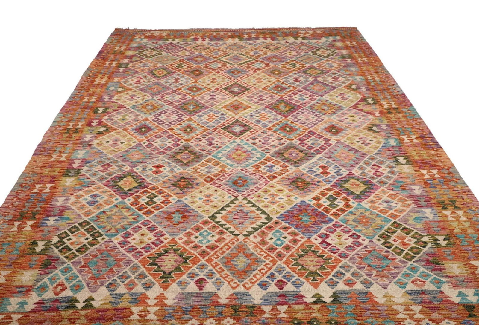 Kelim Teppich | Knotendichte: ca. 200.000 Knoten/m² | Material: 100% Schurwolle | Größe: 211 x 300 cm | Zustand: Handgewebt | Herkunft: Pakistan | Florhöhe: ca. 5 mm | Rustikales Flair für moderne Wohnräume
