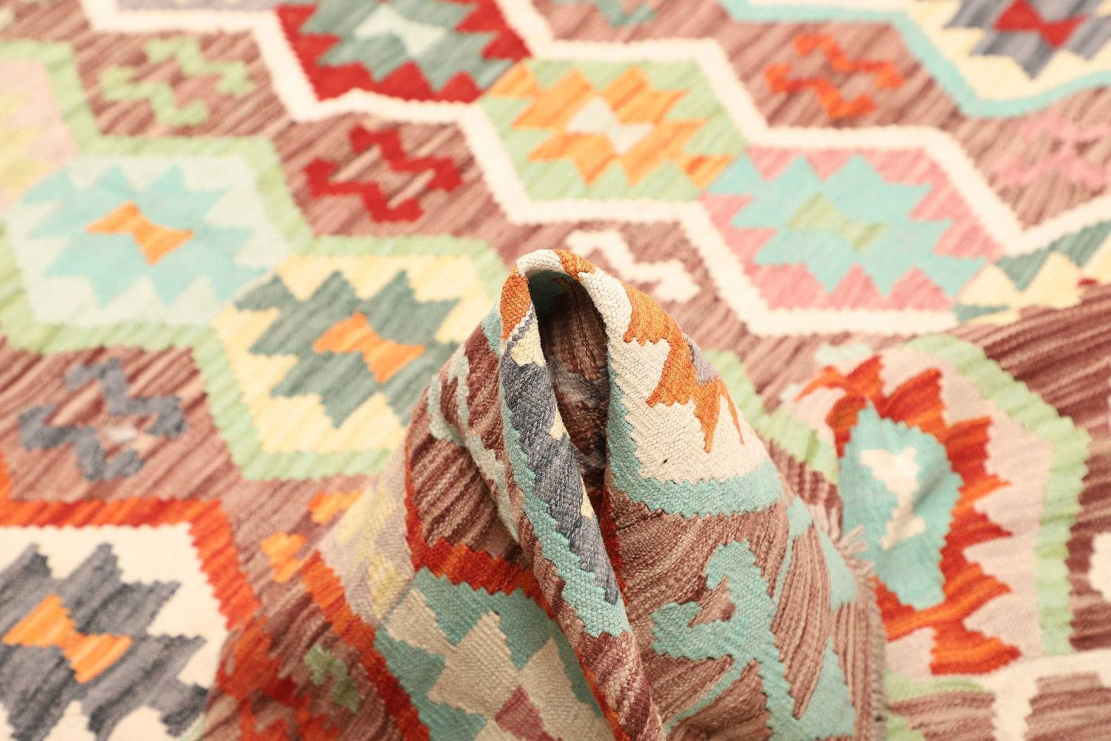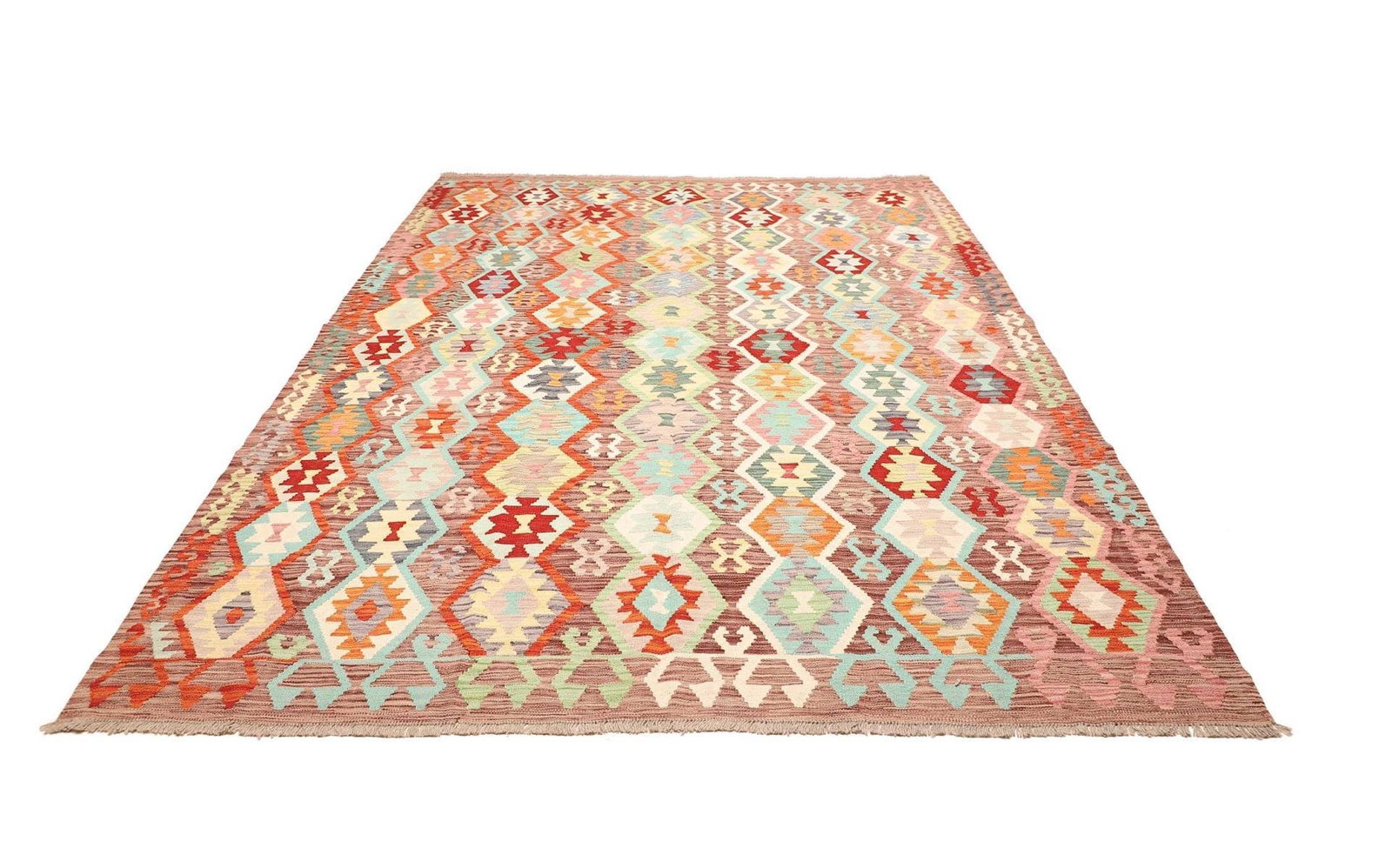 1022$Ursprünglicher Preis war: 1022$824$Aktueller Preis ist: 824$Kelim Teppich | Knotendichte: ca. 200.000 Knoten/m² | Material: 100% Schurwolle (Flor), 100% Baumwolle (Kette) | Größe: 213 x 284 cm | Höhe: ca. 5 mm | Herkunft: Pakistan | Zustand: Handgewebte Qualität