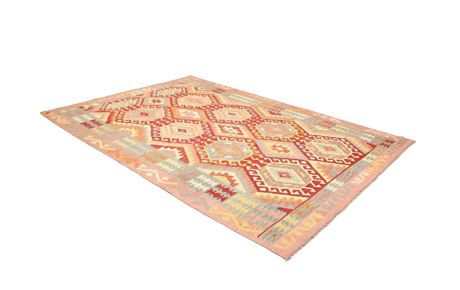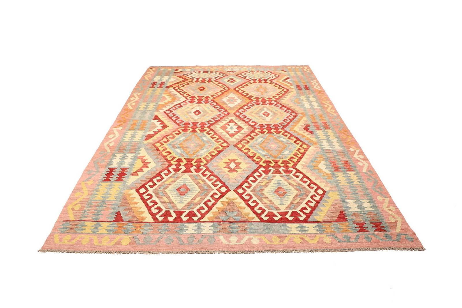 Kelim Teppich | Knotendichte: ca. 200.000 Knoten/m² | Material: 100% Schurwolle und 100% Baumwolle | Größe: 214 x 299 cm | Höhe: ca. 5 mm | Herkunft: Pakistan | Zustand: Handgewebte Qualität