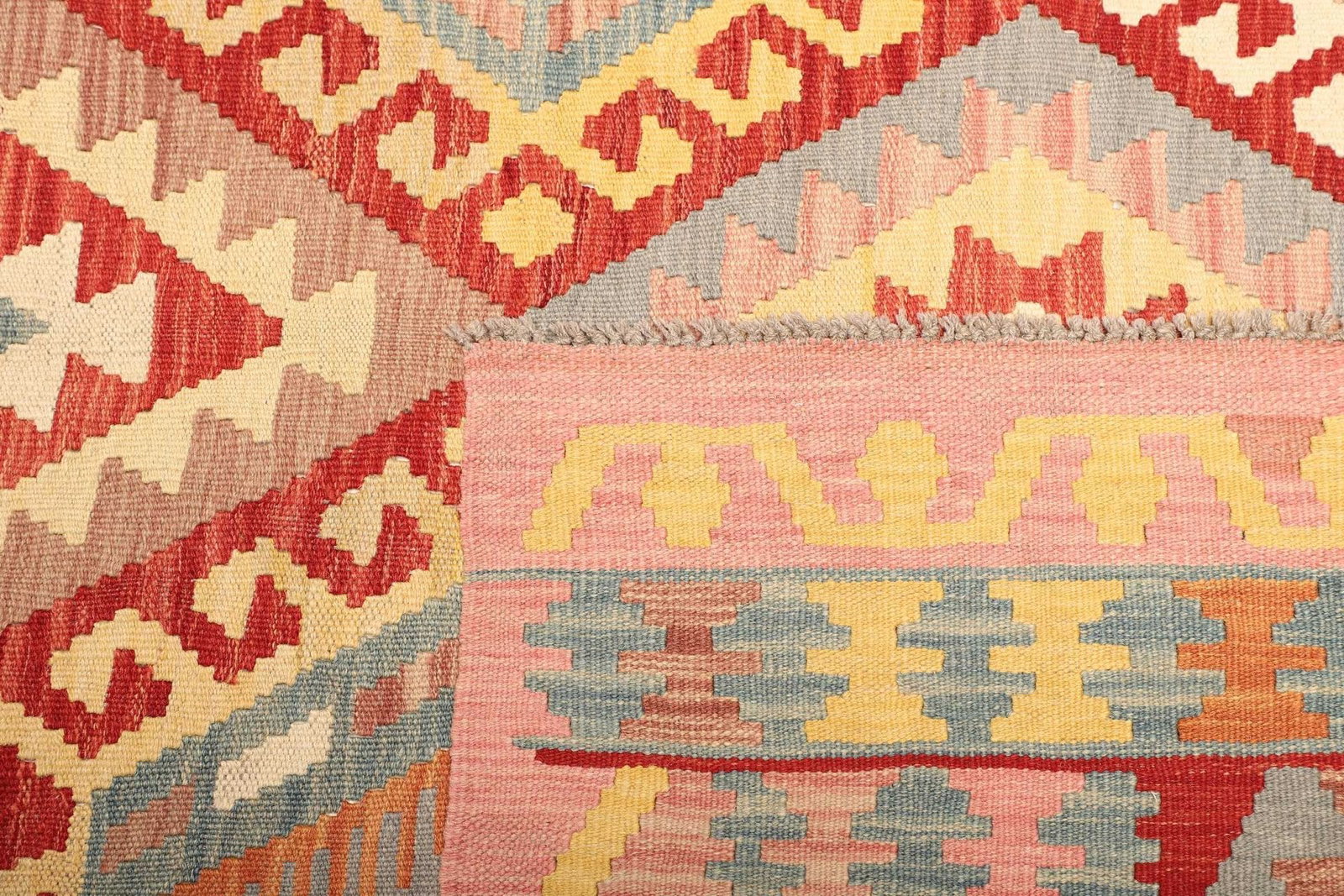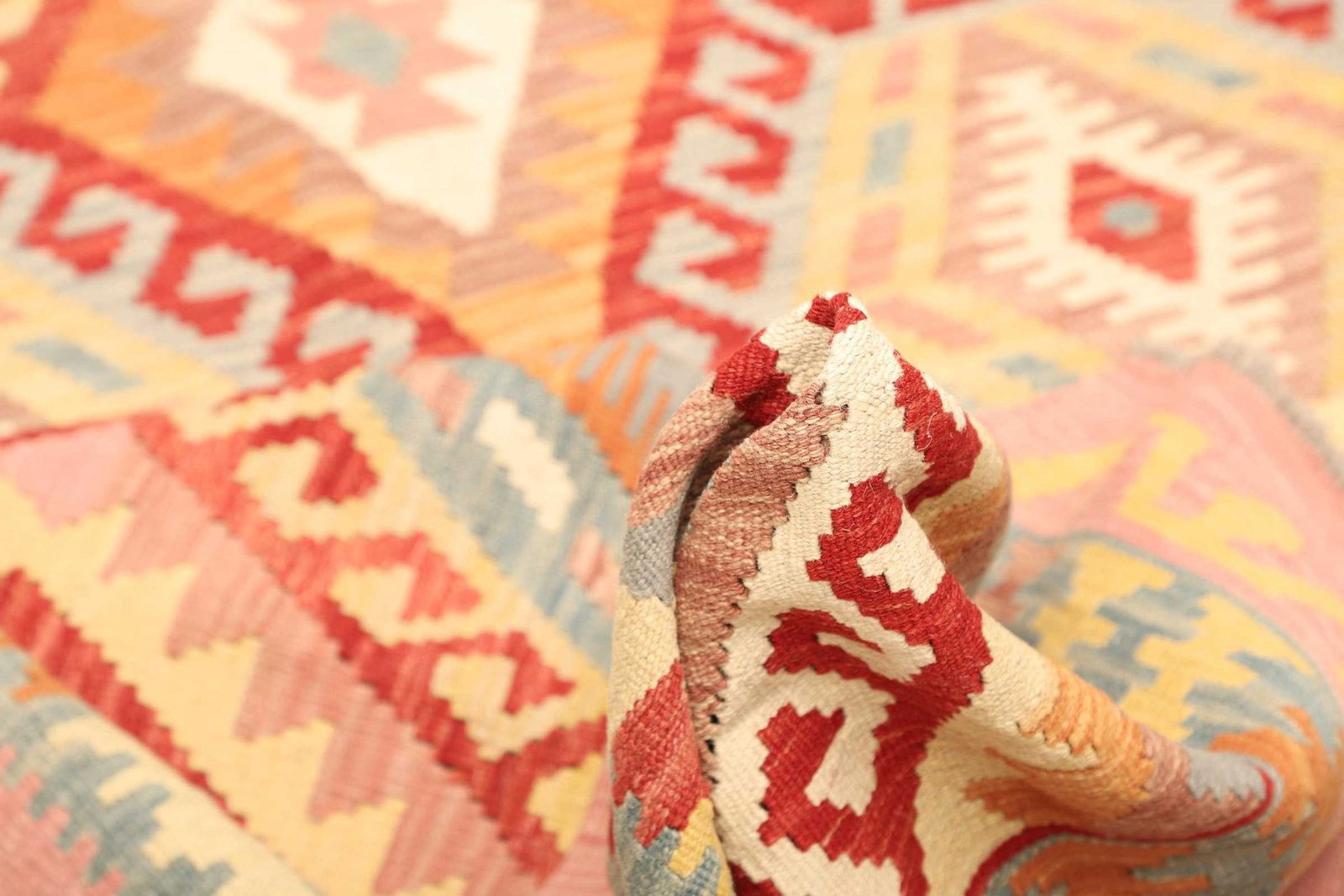 Unser Kelim Teppich wird aus 100% reiner Wolle gefertigt, einem Material, das für seine Langlebigkeit und Strapazierfähigkeit bekannt ist. Wolle sorgt nicht nur für eine angenehme Haptik, sondern auch für eine ausgezeichnete Isolierung, die Ihr Zuhause wärmer und gemütlicher macht. Die handgewebte Technik garantiert, dass jeder Teppich ein Unikat ist, das nach althergebrachten Methoden entstanden ist. Diese traditionelle Handarbeit verleiht dem Teppich zusätzlich einen rustikalen Charakter und zeigt die Liebe zum Detail, die in jeden einzelnen Arbeitsschritt investiert wurde.