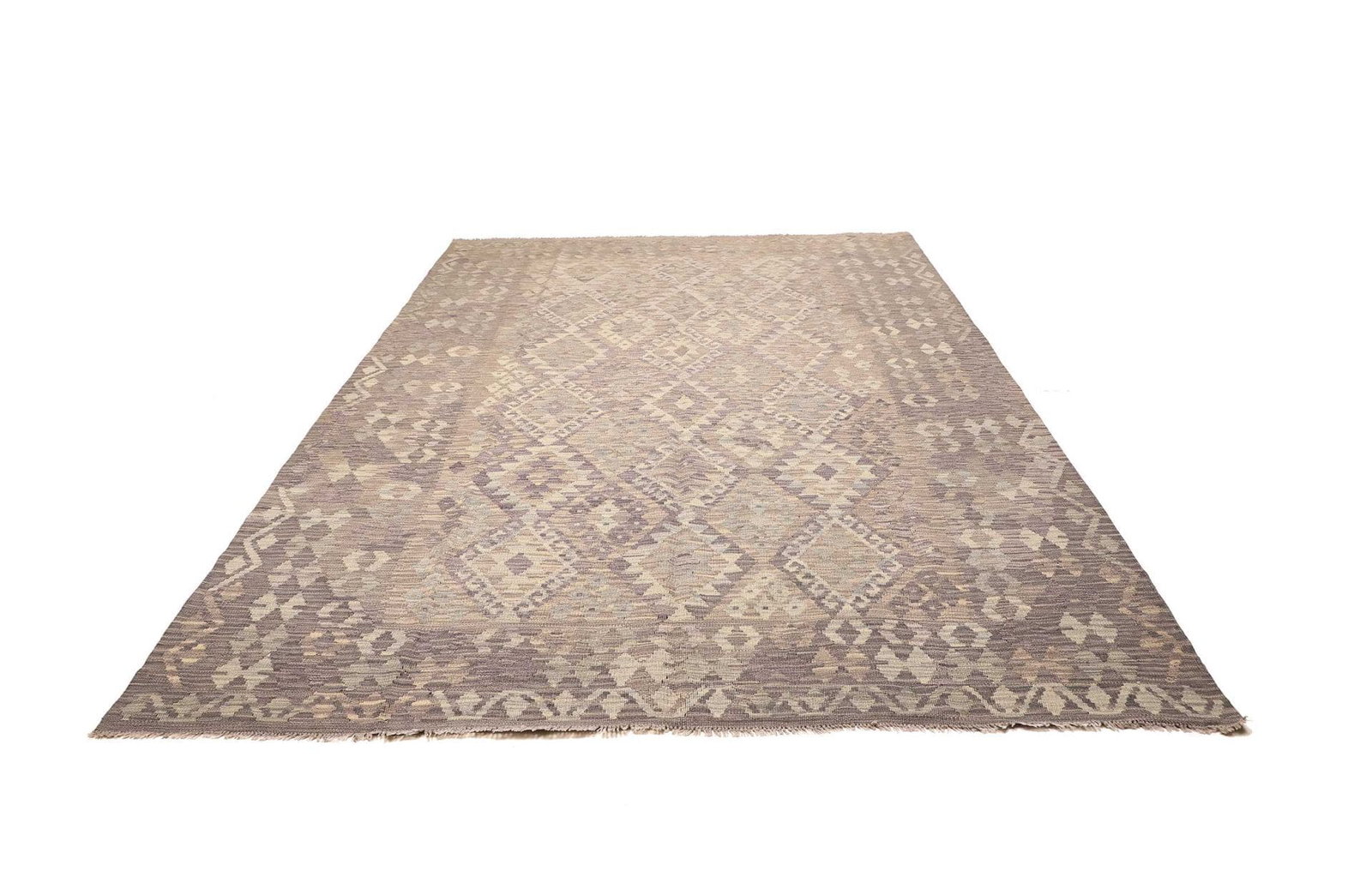 1022$Ursprünglicher Preis war: 1022$851$Aktueller Preis ist: 851$Kelim Teppich | Knotendichte: ca. 200.000 Knoten/m² | Material: 100% Schurwolle | Kette: 100% Baumwolle | Größe: 216 x 289 cm | Herkunft: Pakistan | Höhe: ca. 5 mm | Handgewebte Qualität