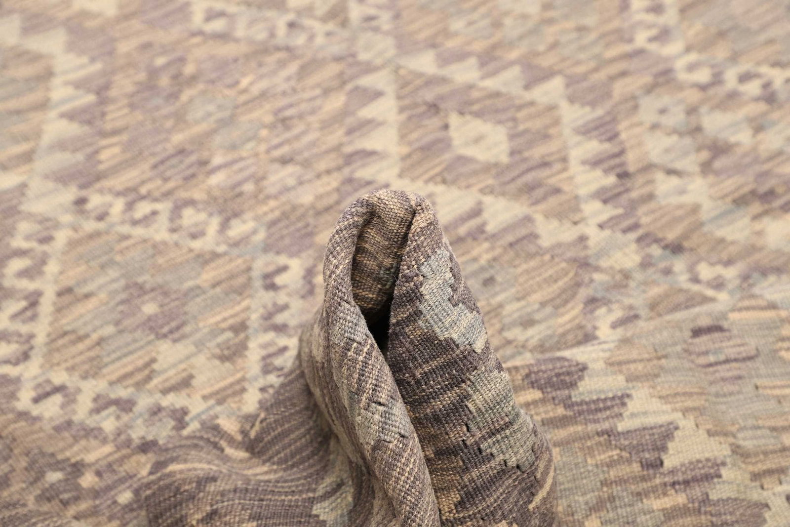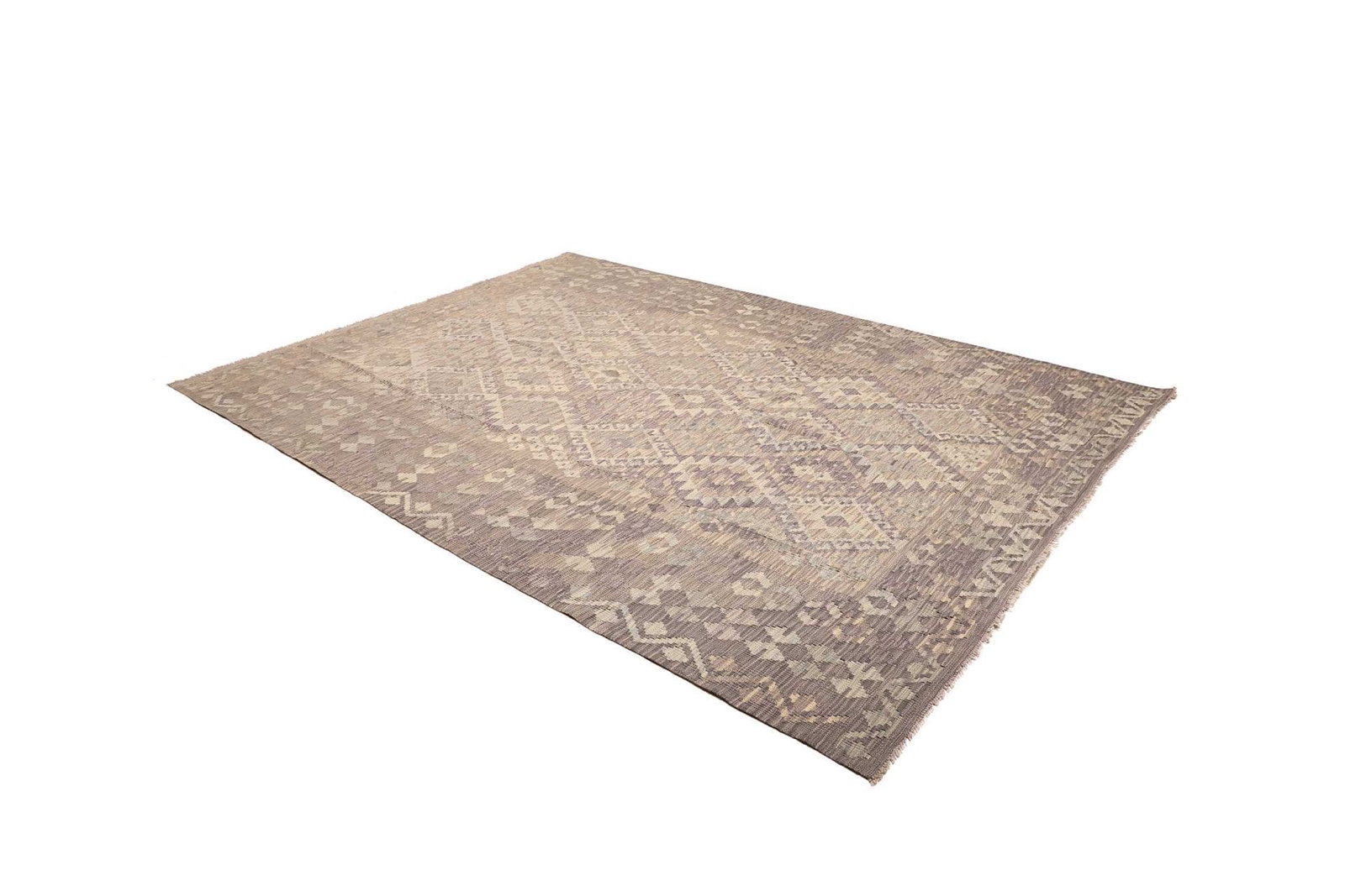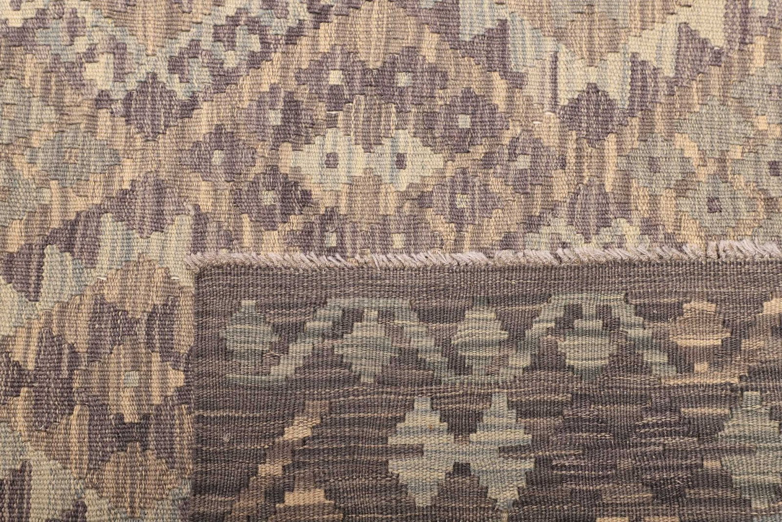 Der Teppich ist aus hochwertiger Wolle gefertigt, die für ihre Langlebigkeit und Robustheit bekannt ist. Wolle hat zudem hervorragende isolierende Eigenschaften und sorgt für eine angenehme Fußwärme. Die Handwebtechnik, in der dieser Teppich hergestellt wurde, garantiert eine hohe Knotendichte, was nicht nur die Strapazierfähigkeit erhöht, sondern auch das feine und detailreiche Muster hervorhebt. Die Verwendung von Naturmaterialien schenkt dem Kelim Teppich nicht nur eine angenehme Haptik, sondern auch einen umweltfreundlichen Charakter.