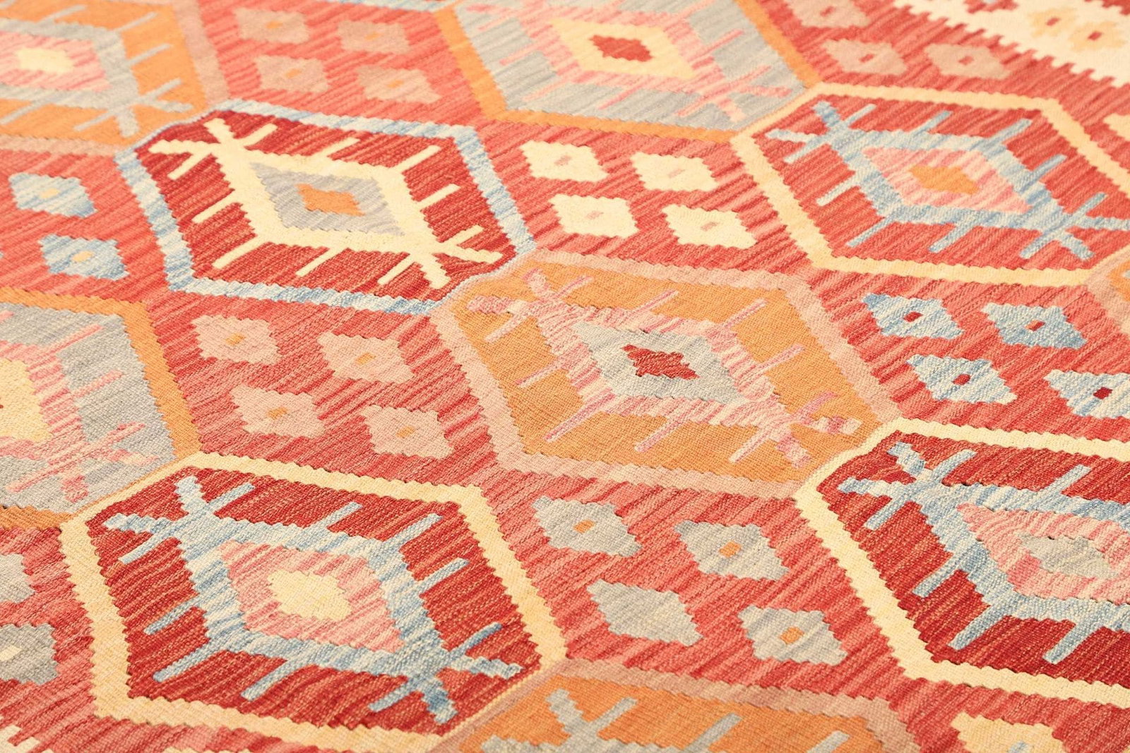 Kelim Teppich, handgewebt, rustikales Flair, Wolle