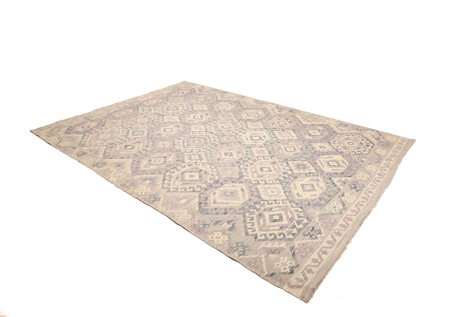 1150$Ursprünglicher Preis war: 1150$921$Aktueller Preis ist: 921$Kelim Teppich | Knotendichte: ca. 200.000 Knoten/m² | Material: 100% Schurwolle (Flor), 100% Baumwolle (Kette) | Größe: 216 x 303 cm | Zustand: Handgewebt | Herkunft: Pakistan | Höhe: ca. 5 mm | Ideal für moderne und rustikale Einrichtungsstile