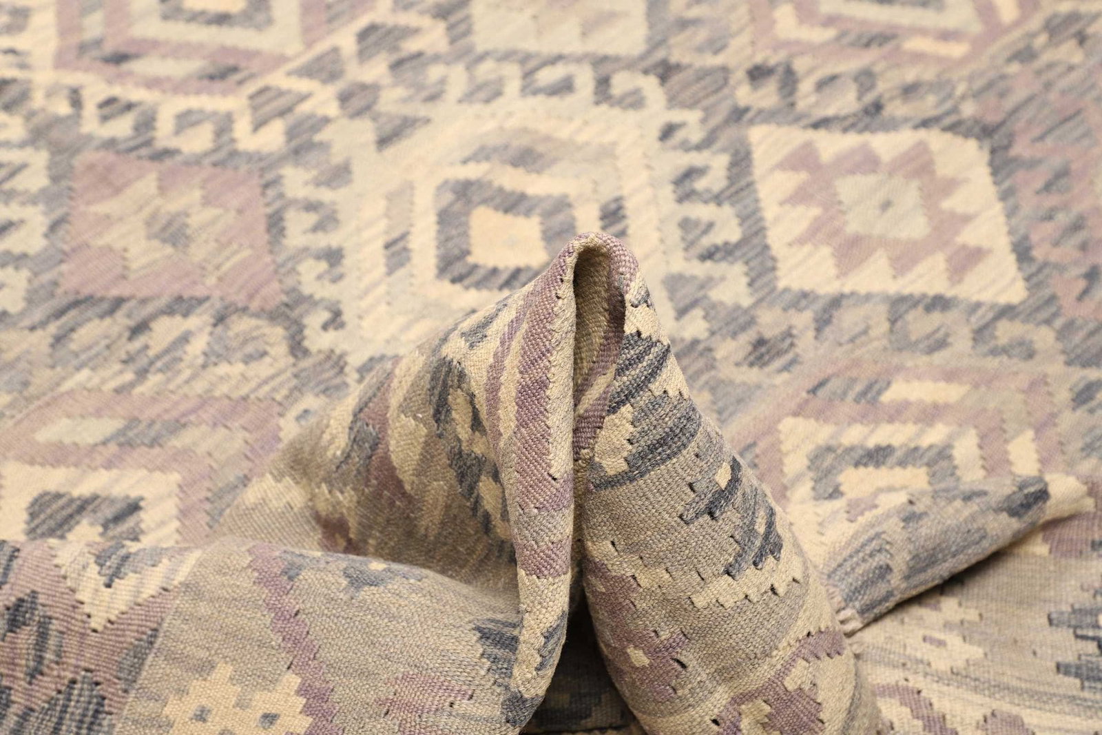 Unser Kelim Teppich besteht aus 100% reiner Wolle, die nicht nur für ihre Strapazierfähigkeit bekannt ist, sondern auch für ihre natürliche Isolierung. Wolle ist nicht nur weich und angenehm zu berühren, sondern hat zudem die Fähigkeit, Feuchtigkeit zu regulieren und ist von Natur aus schmutzabweisend. Die handgewebte Technik, die bei der Herstellung dieses Teppichs verwendet wird, sorgt für eine überragende Qualität und Langlebigkeit. Die sorgfältige Verarbeitung ermöglicht es, komplexe Muster und Farbkombinationen zu kreieren, die dem Teppich seine individuelle Note verleihen.