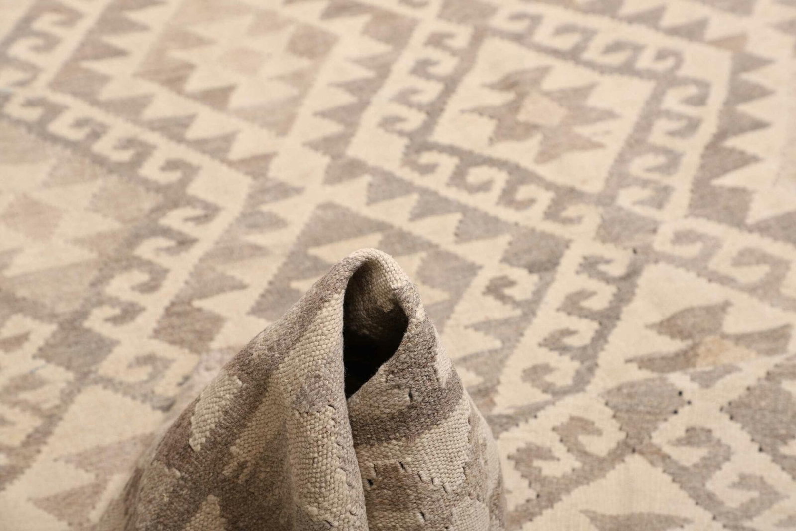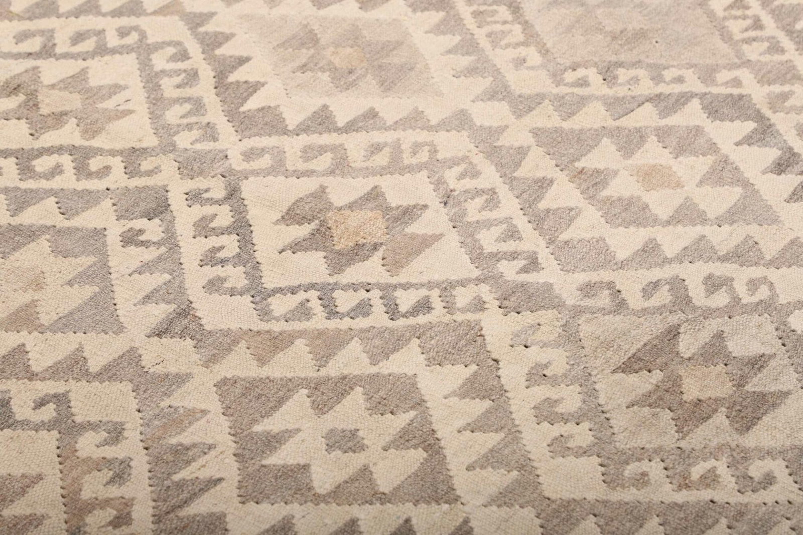 Ein bemerkenswertes Merkmal dieser handgewebten Technik ist die Knotendichte. Bei Kelim Teppichen kann die Knotendichte variieren, wobei eine hohe Dichte in der Regel für eine bessere Haltbarkeit und einen klareren Musterdruck sorgt. Darüber hinaus eignet sich dieser Teppich hervorragend für den Einsatz in stark frequentierten Bereichen, da die robuste Schurwolle eine natürliche Widerstandsfähigkeit bietet.