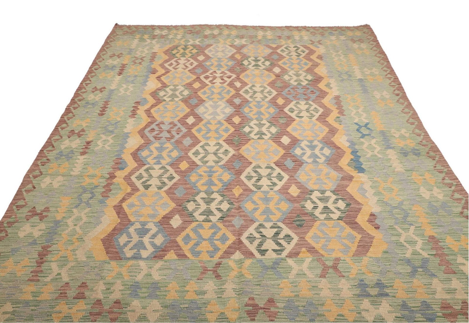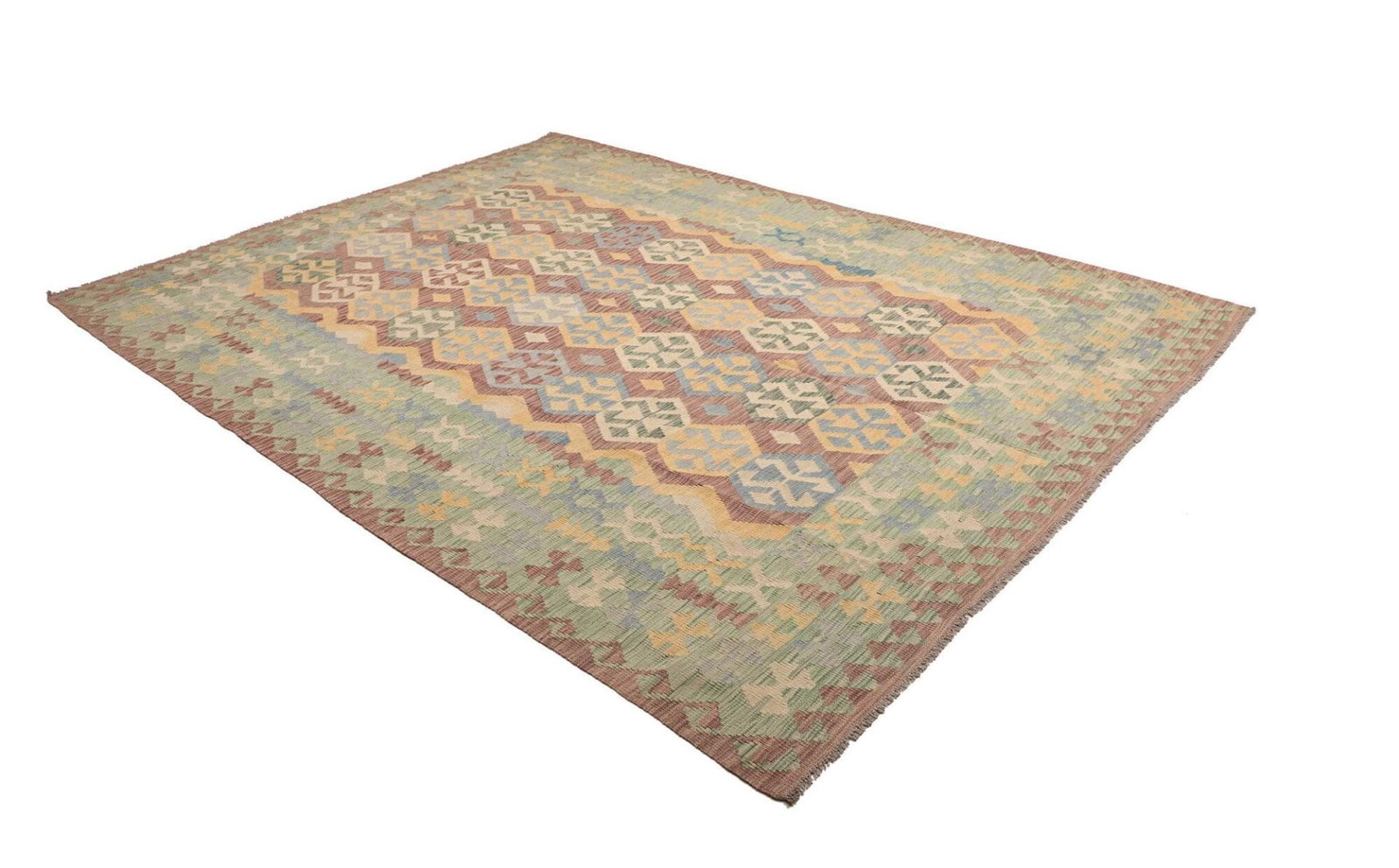 Handgewebter Kelim Teppich | Knotendichte: ca. 200.000 Knoten/m² | Material: 100% Schurwolle (Flor), 100% Baumwolle (Kette) | Größe: 217×291 cm | Herkunft: Pakistan | Höhe: ca. 5 mm | Rustikales Flair für moderne Wohnräume