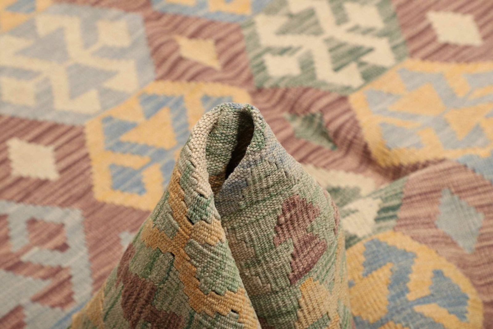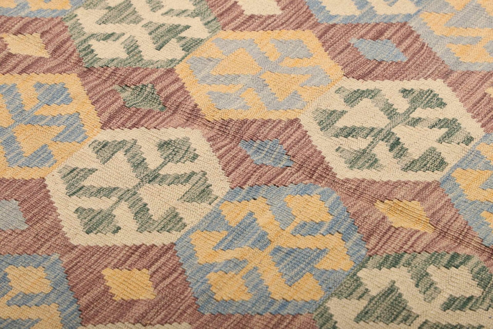 Der Qualitätsanspruch an handgewebte Teppiche ist besonders hoch. Der Kelim Teppich wird ausschließlich aus Schurwolle gefertigt und in traditioneller Technik hergestellt. Diese handgewebte Kunstform sorgt für eine besondere Knotendichte, die nicht nur die Langlebigkeit des Teppichs erhöht, sondern auch die Detailgenauigkeit der Muster unterstreicht. Es zeigt die Geduld und das Geschick der Handwerker, die jeden Teppich als Einzelstück von Hand fertigen.