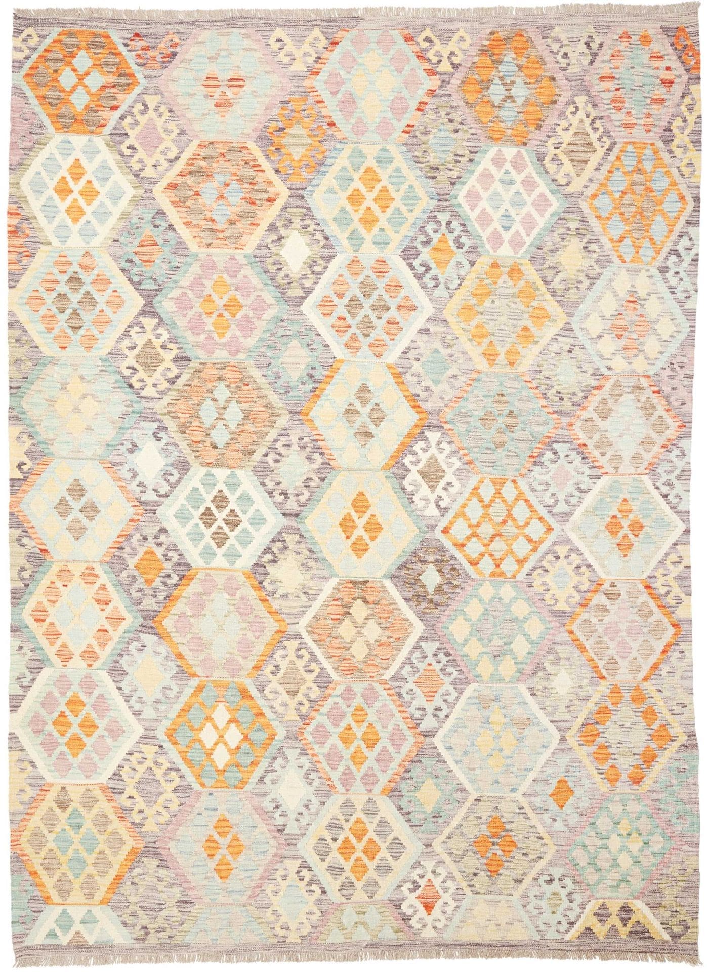 Kelim Teppich 218 x 297 cm, handgewebt, afghanisches Design