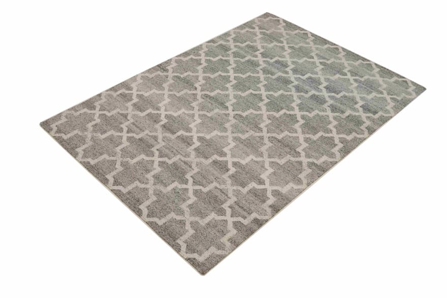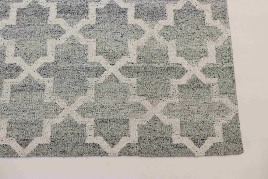 • Handgewebter Kelim-Teppich | Größe: 218×153 cm | Farbe: Schwarz/Grau | Material: Wolle und Baumwolle | Zustand: Neu | Ursprung: Indien | Dicke: ca. 6 mm | Gewicht: ca. 4 kg