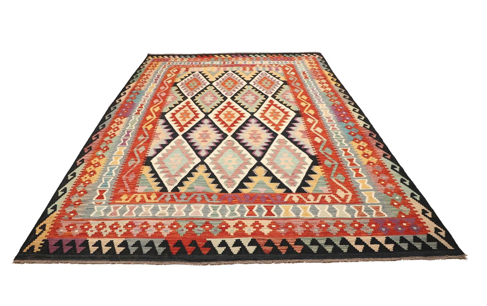 Kelim Teppich 220 x 301cm, handgewebt, rustikales Flair, Wolle