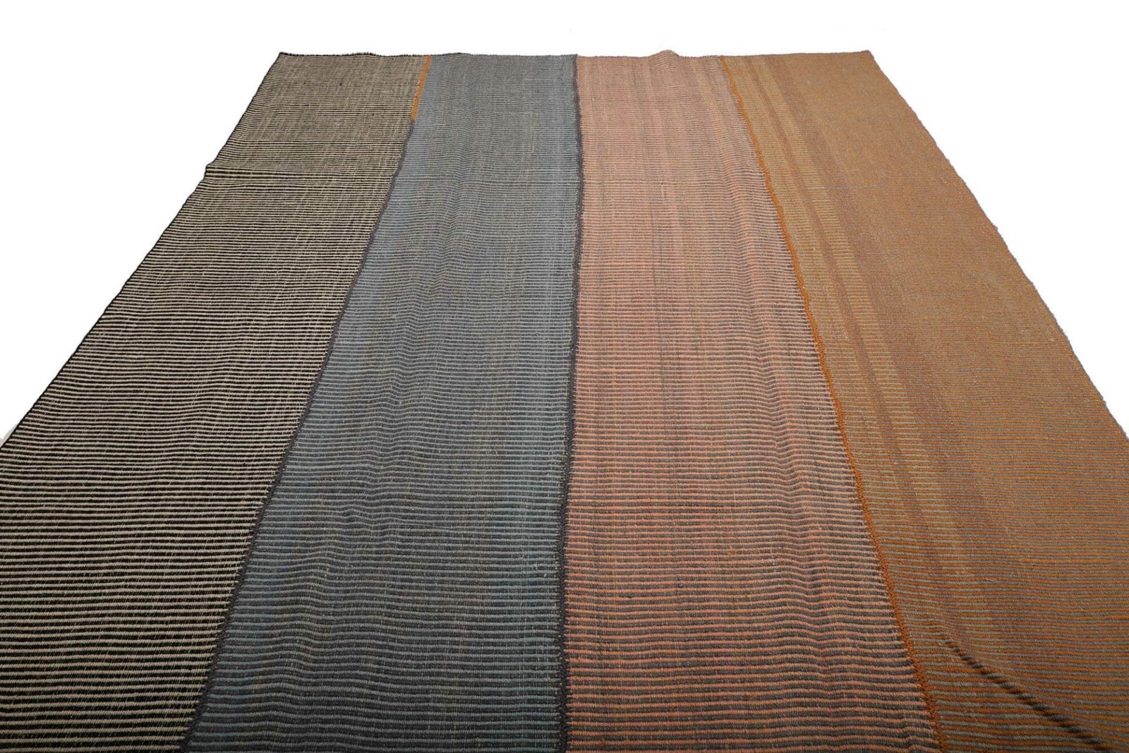 Das rustikale Design des Kelim Teppichs zeichnet sich durch seine traditionellen geometrischen Muster und kräftigen Farben aus. Diese Muster sind oft symbolisch und können verschiedene Bedeutungen haben, die von familiären Geschichten oder den Lebensumständen der Weber inspiriert sind.