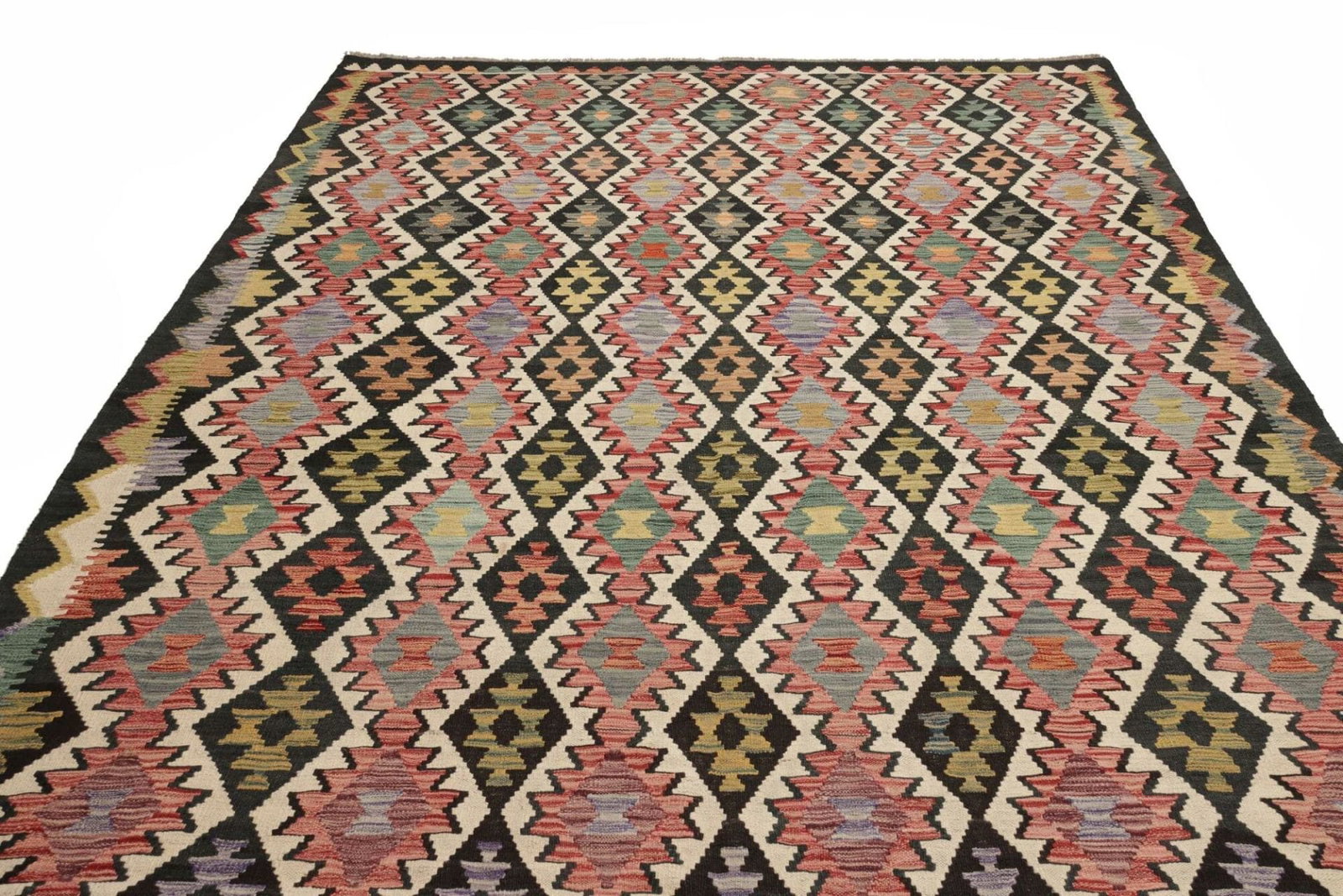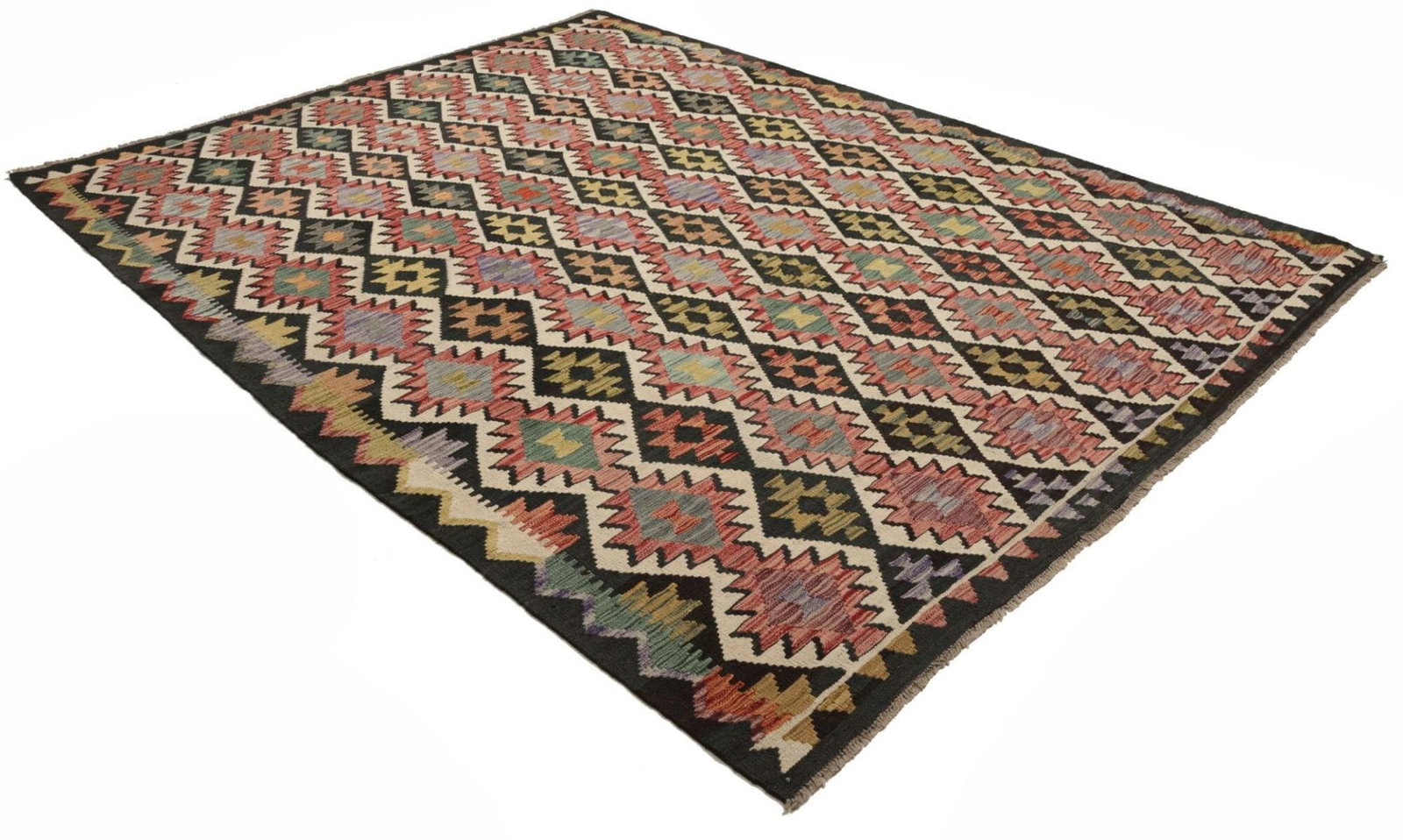 Kelim Teppich | Knotendichte: ca. 200.000 Knoten/m² | Material: 100% Schurwolle (Flor) und 100% Baumwolle (Kette) | Größe: 227 x 299 cm | Höhe: ca. 5 mm | Herkunft: Pakistan | Verarbeitung: Handgewebt | Vielseitig einsetzbar, ideal für moderne und rustikale Einrichtungsstile