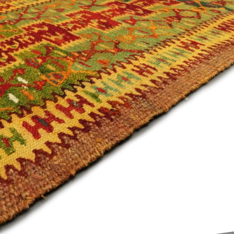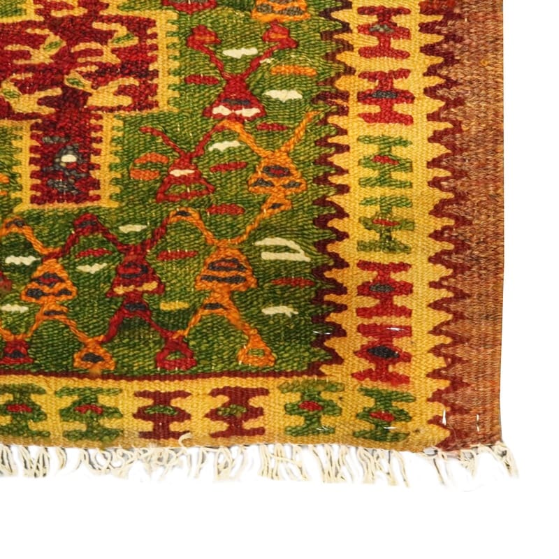 Um die Langlebigkeit Ihres Kelim Teppichs zu gewährleisten, empfehlen wir eine regelmäßige Reinigung mit einem Staubsauger auf niedriger Stufe. Bei hartnäckigen Flecken verwenden Sie milde Seife und Wasser, um die betroffene Stelle sanft zu reinigen. Vermeiden Sie aggressive Chemikalien, um die Farben nicht zu beschädigen.