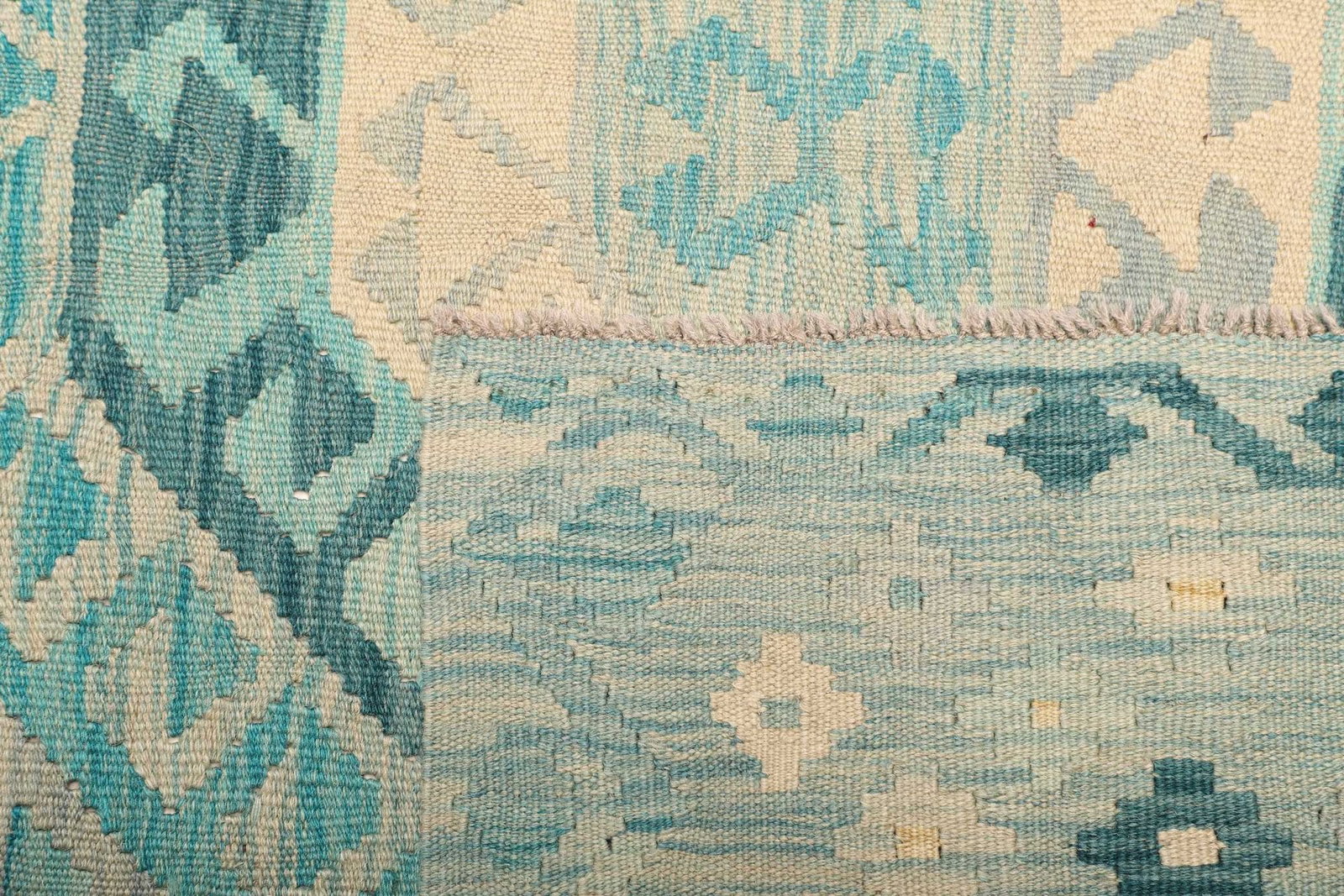 971$ In den WarenkorbKelim 215 x 144 cm – Handgewebt mit identischem Muster auf Vorder- und Rückseite – Orientteppich