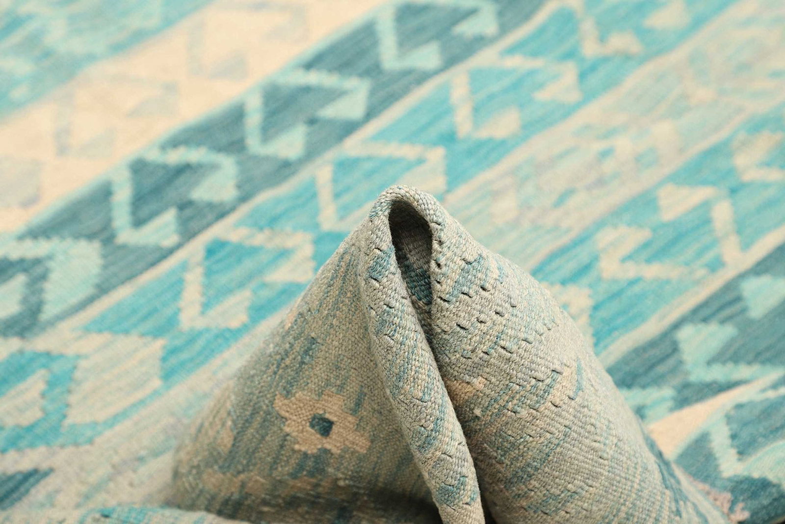 Der handgewebte Charakter dieses Kelim Teppichs macht ihn nicht nur besonders, sondern auch einzigartig. Da jeder Teppich von Kunsthandwerkern gefertigt wird, können kleine Unregelmäßigkeiten und Unterschiede im Design auftreten, die das Stück authentisch und individuell machen. Diese Besonderheit hebt einen Kelim Teppich von maschinell gefertigten Teppichen ab.
