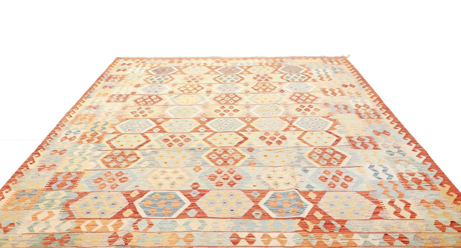 1253$Ursprünglicher Preis war: 1253$879$Aktueller Preis ist: 879$Kelim Teppich | Knotendichte: ca. 200.000 Knoten/m² | Material: 100% Schurwolle | Größe: 251×298 cm | Zustand: Handgewebt und beidseitig verwendbar | Herkunft: Afghanistan | Florhöhe: ca. 5 mm | Kette: 100% Baumwolle