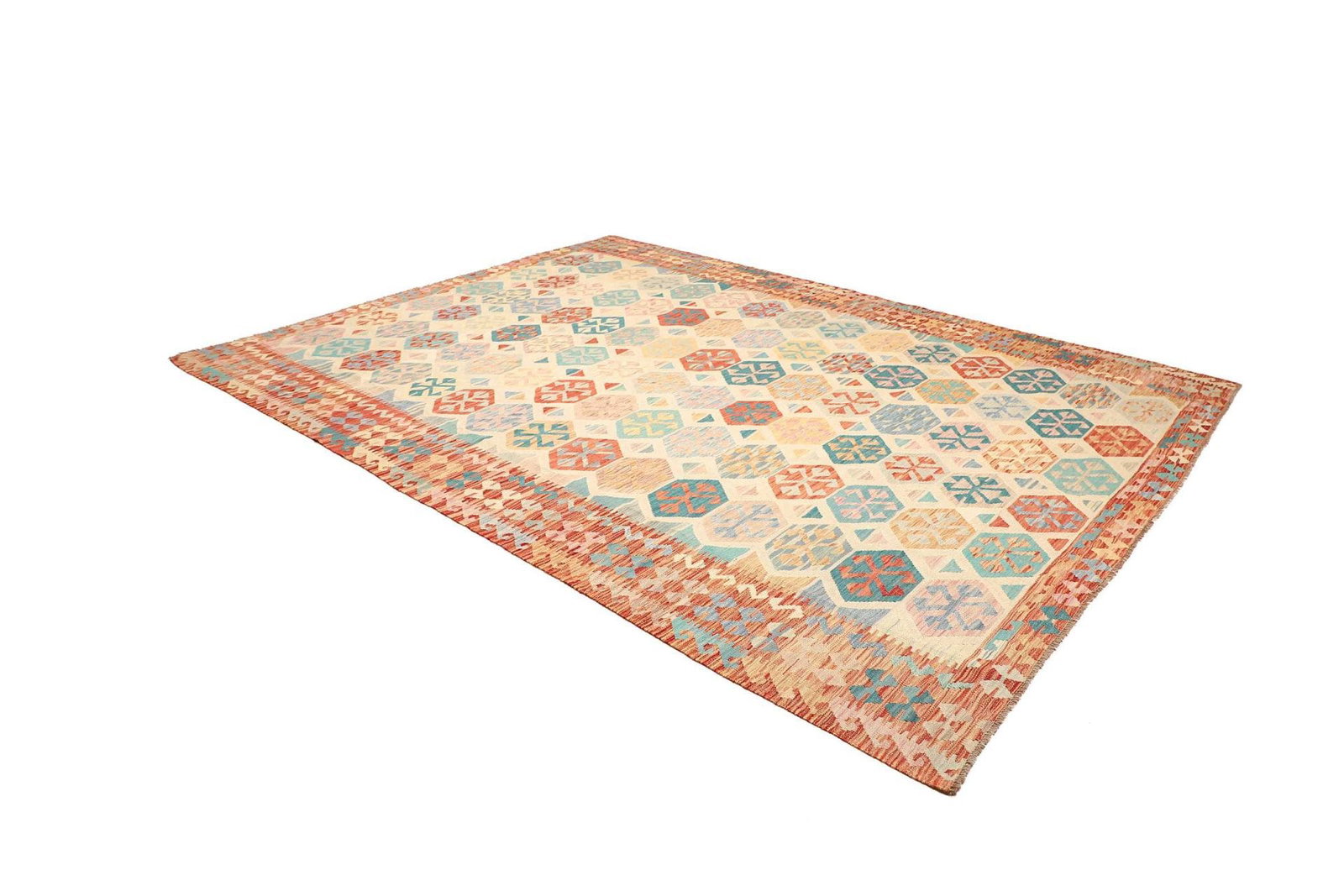 1655$ In den WarenkorbHandgewebter Wollteppich Ghashgai Kelim in Naturfarbe – Maße: 292 x 206 cm