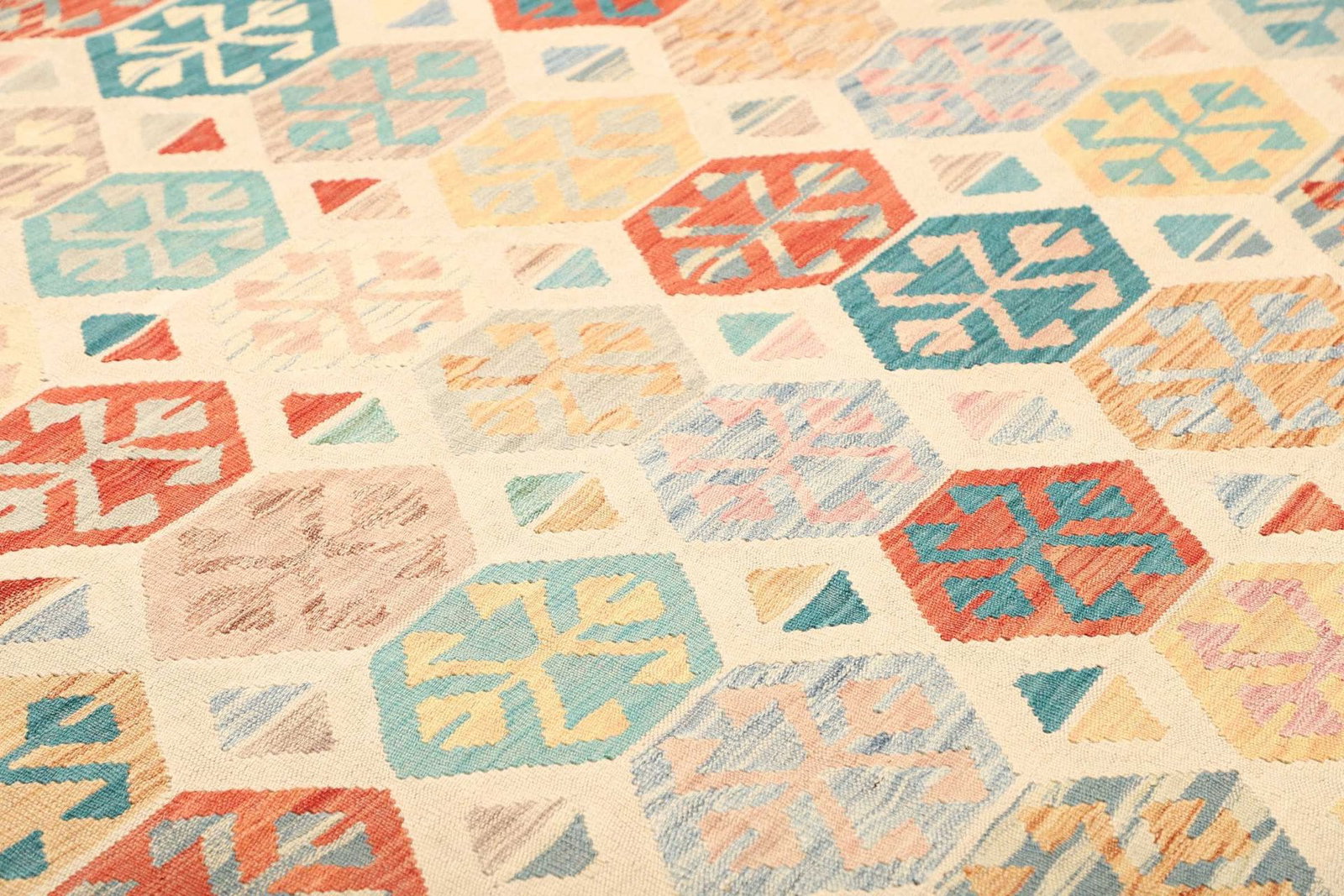 Kelim Teppich, handgewebt, rustikales Flair, Wolle
