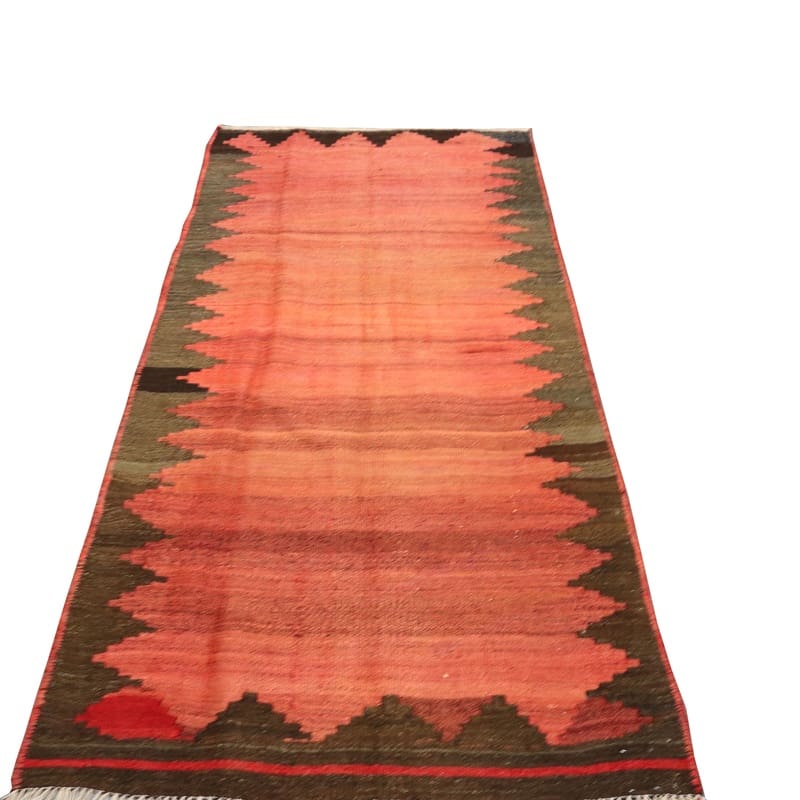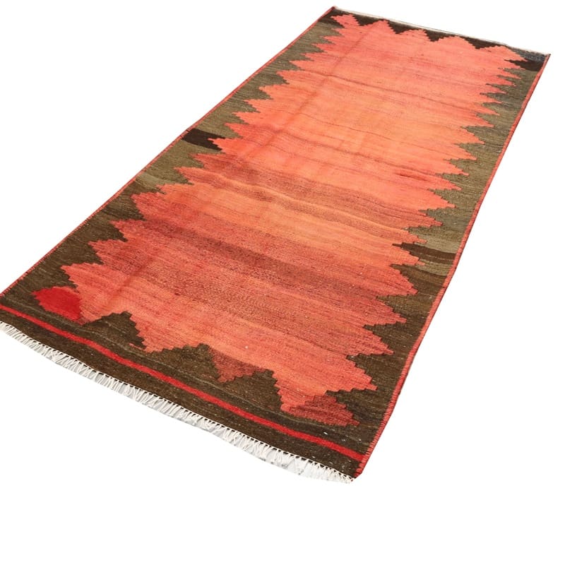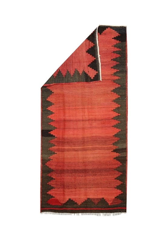 Handgewebter Kelim Teppich | Knotendichte: Hoch | Material: Wolle und Baumwolle | Farbe: Rot/Orange | Größe: 253×112 cm | Zustand: Neuzeitlich (0-20 Jahre) | Ursprung: Iran/Persien