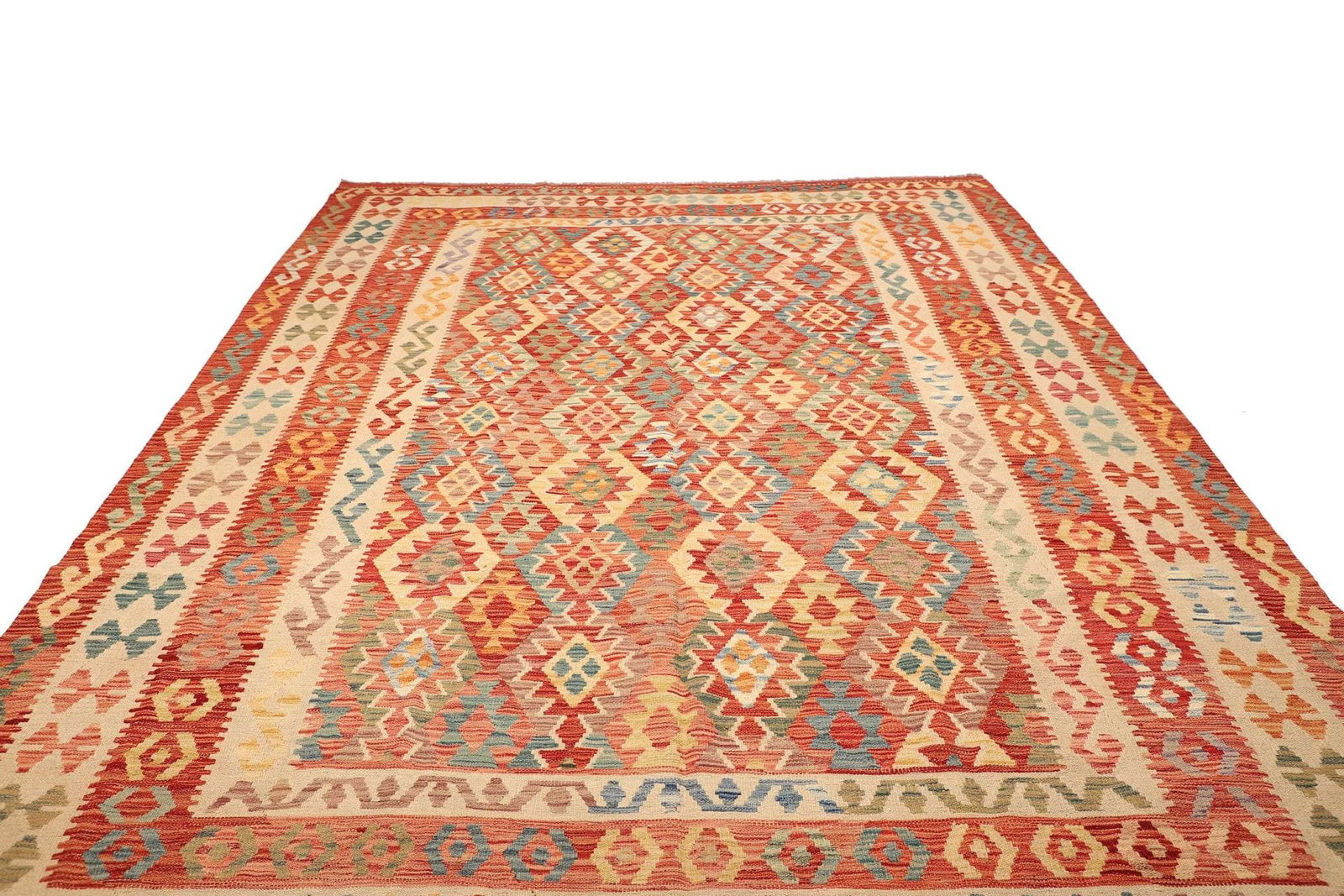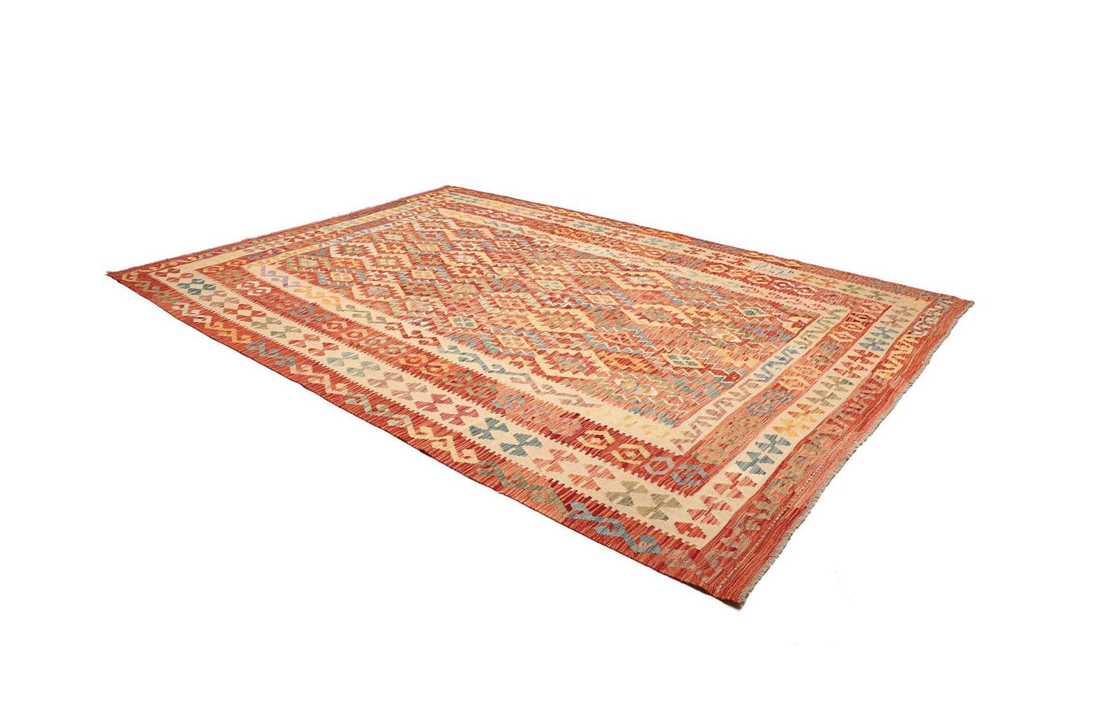 Kelim Teppich | Knotendichte: ca. 200.000 Knoten/m² | Material: 100% Schurwolle | Größe: 256×345 cm | Höhe: ca. 5mm | Kette: 100% Baumwolle | Herkunft: Pakistan | Zustand: Handgewebte Qualität