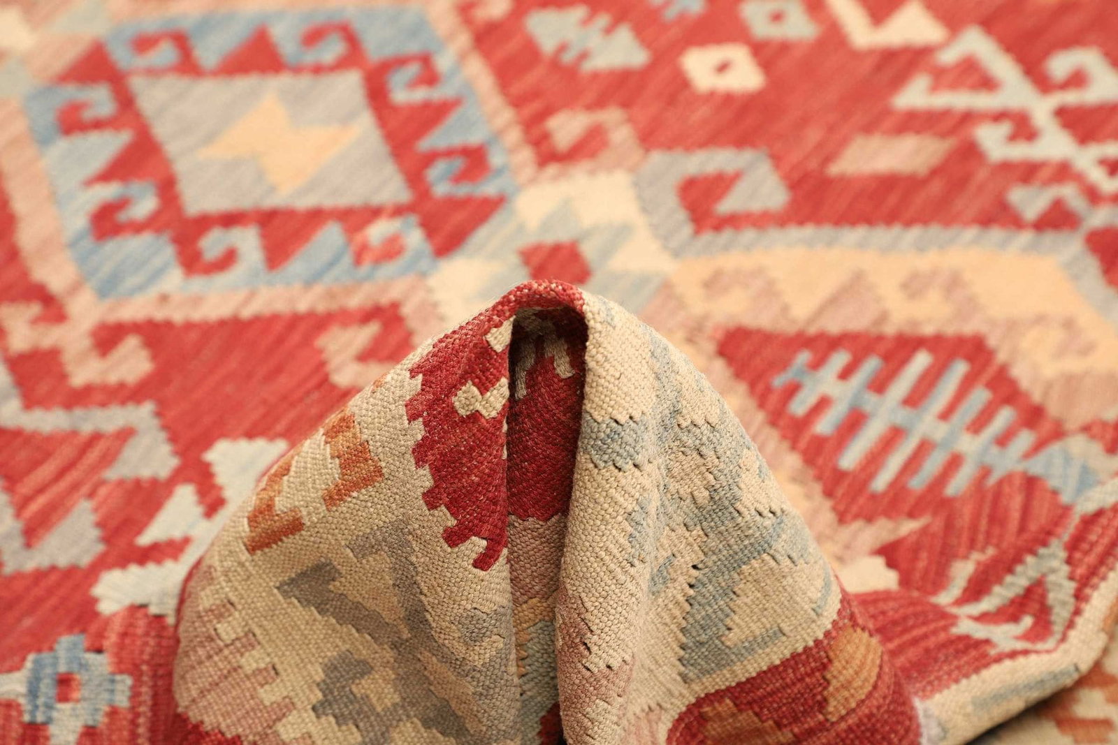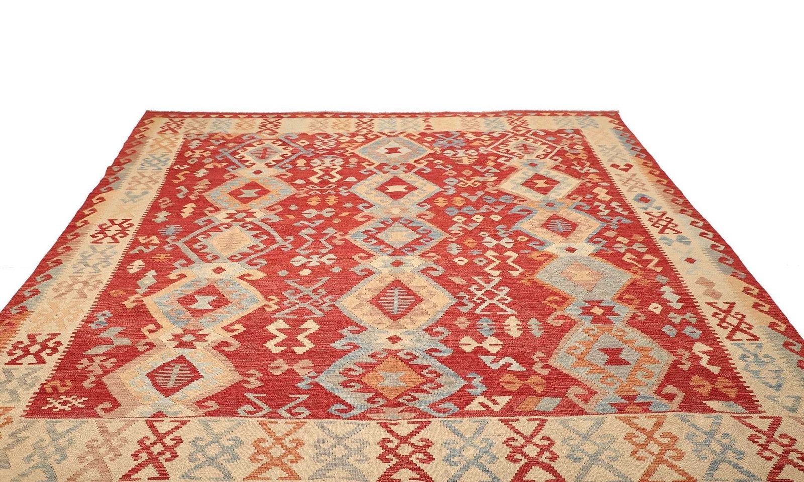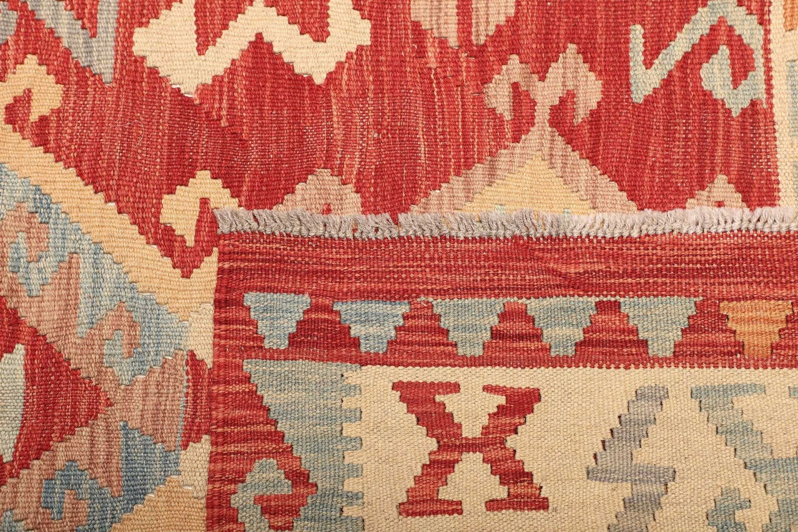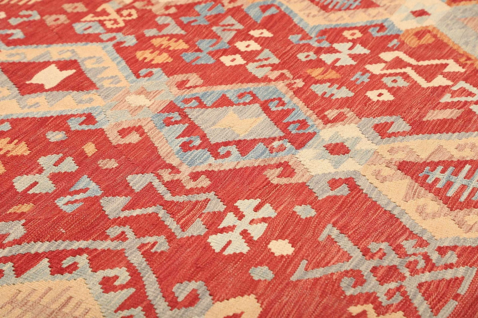 5478$ WeiterlesenKelim 215 x 144 cm – Handgewebt mit identischem Muster auf Vorder- und Rückseite – Orientteppich
