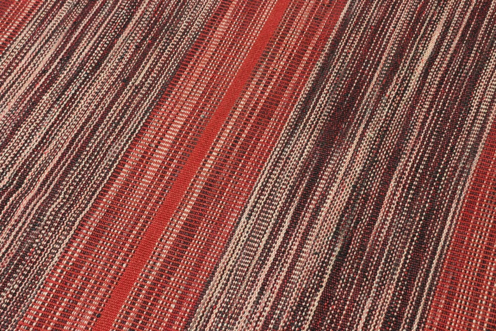 Obwohl dieser Kelim Teppich für den Innenbereich konzipiert ist, können Sie ihn gelegentlich im Freien verwenden, jedoch nicht bei direkter Sonneneinstrahlung oder Nässe. UV-Strahlen können die Farben verblassen, und Feuchtigkeit kann den Teppich beschädigen.