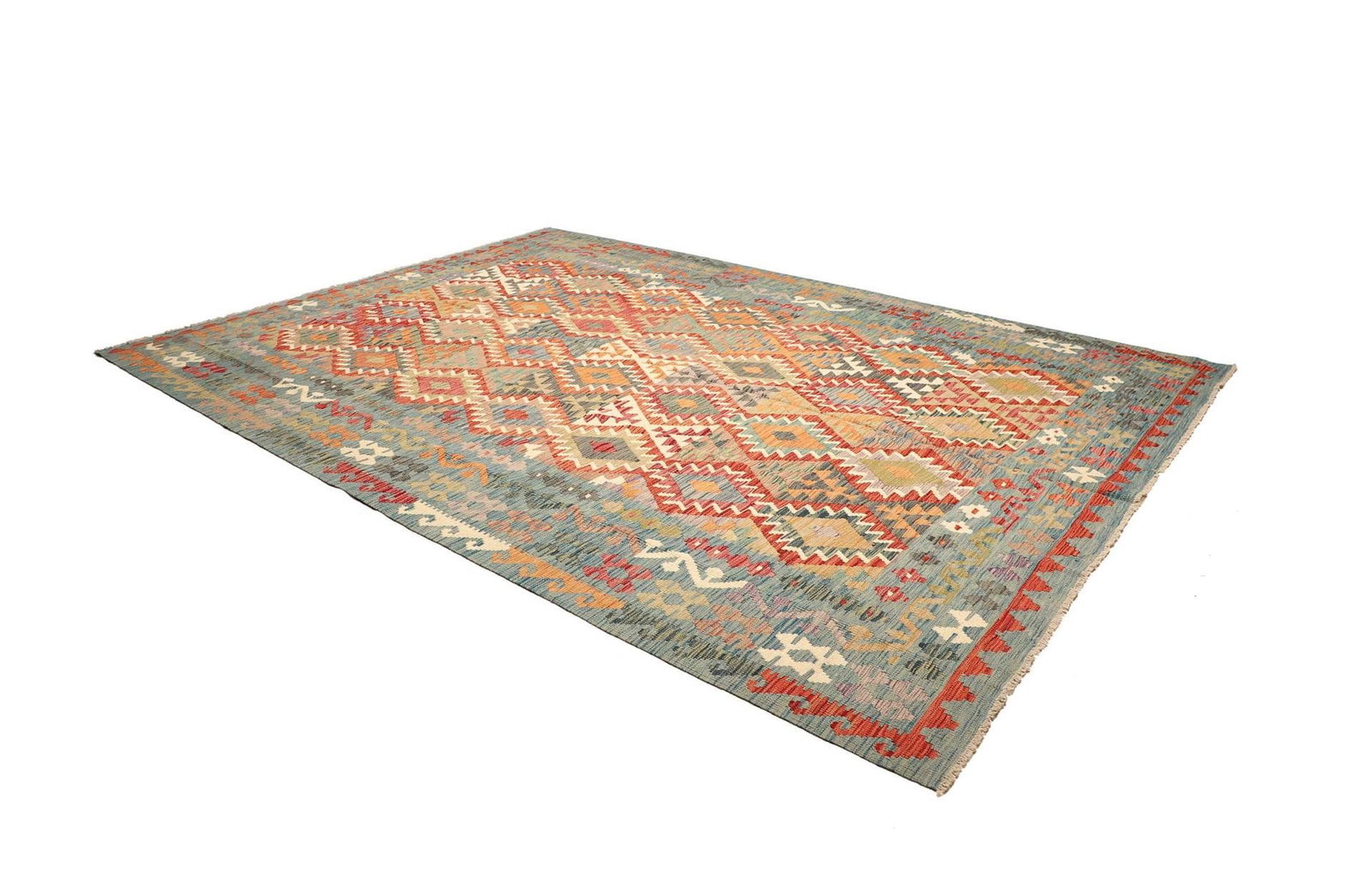 Kelim Teppich | Knotendichte: ca. 200.000 Knoten/m² | Material: 100% Schurwolle und 100% Baumwolle | Größe: 261 x 356 cm | Herkunft: Pakistan | Höhe: ca. 5 mm | Zustand: Handgewebt, in gutem Zustand