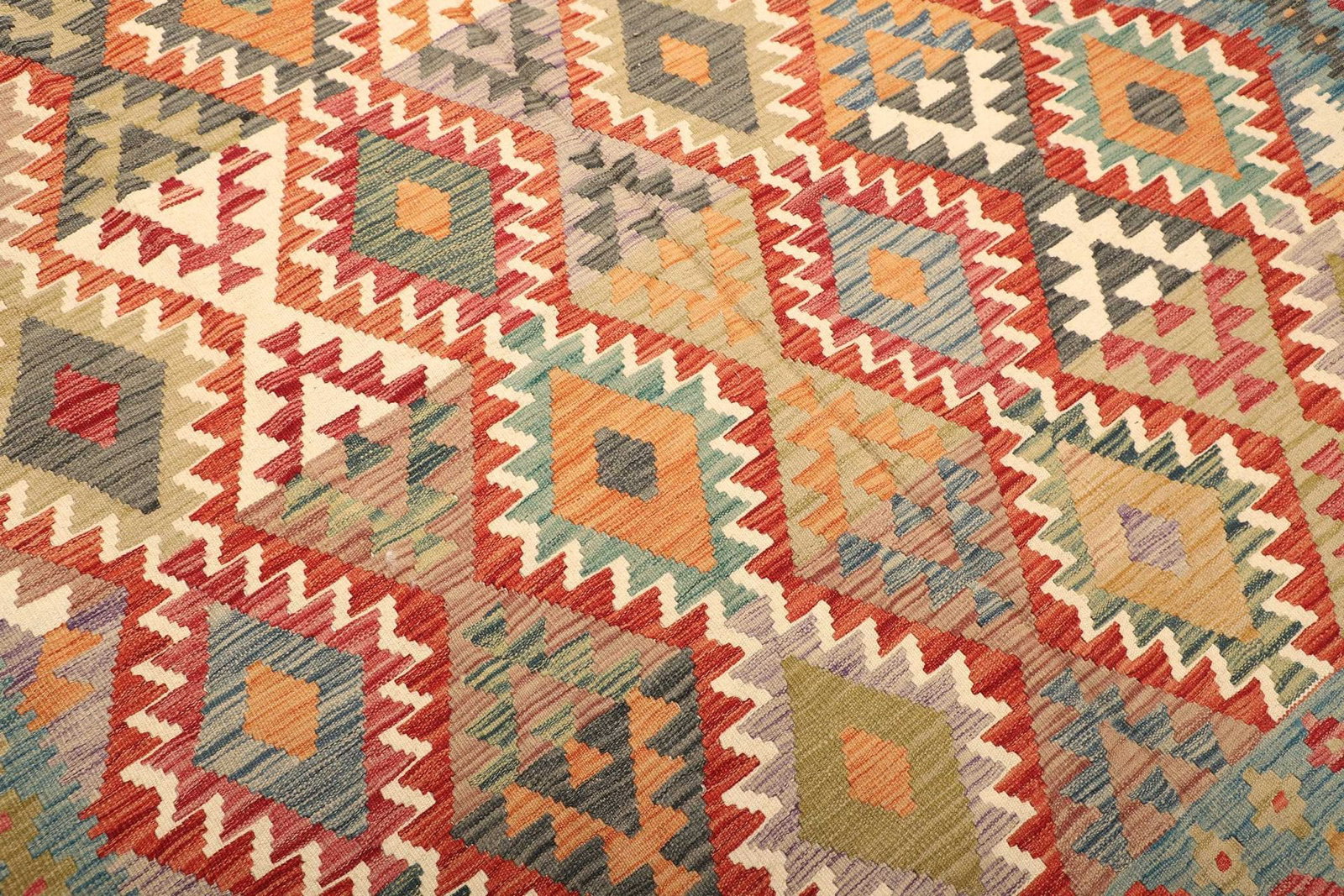 Der Kelim Teppich zeichnet sich durch seine eindrucksvollen geometrischen Muster und lebhaften Farben aus, die einen modernen und zugleich traditionellen Flair vermitteln. Jedes Design erzählt eine eigene Geschichte und ist in vielen Fällen mit Symbolen und Motiven versehen, die bestimmte kulturelle Bedeutungen tragen. Diese Teppiche bringen nicht nur Farbe ins Spiel, sondern auch eine tiefere Bedeutung, die das Erbe der Region widerspiegelt.