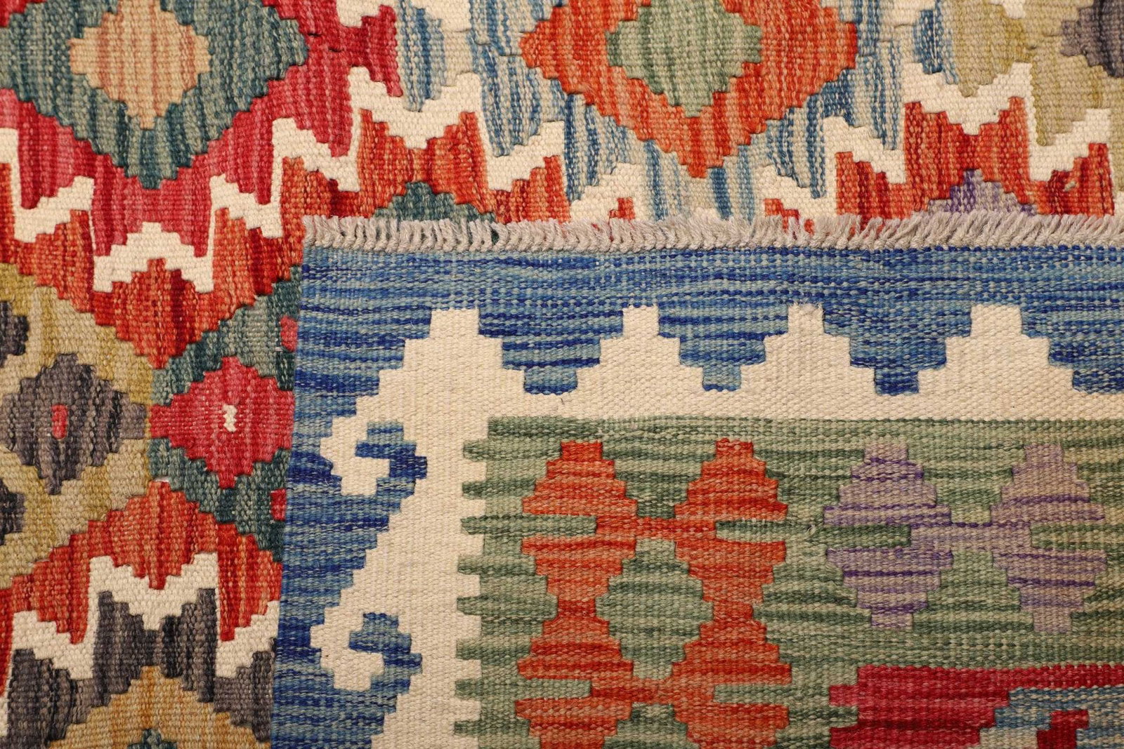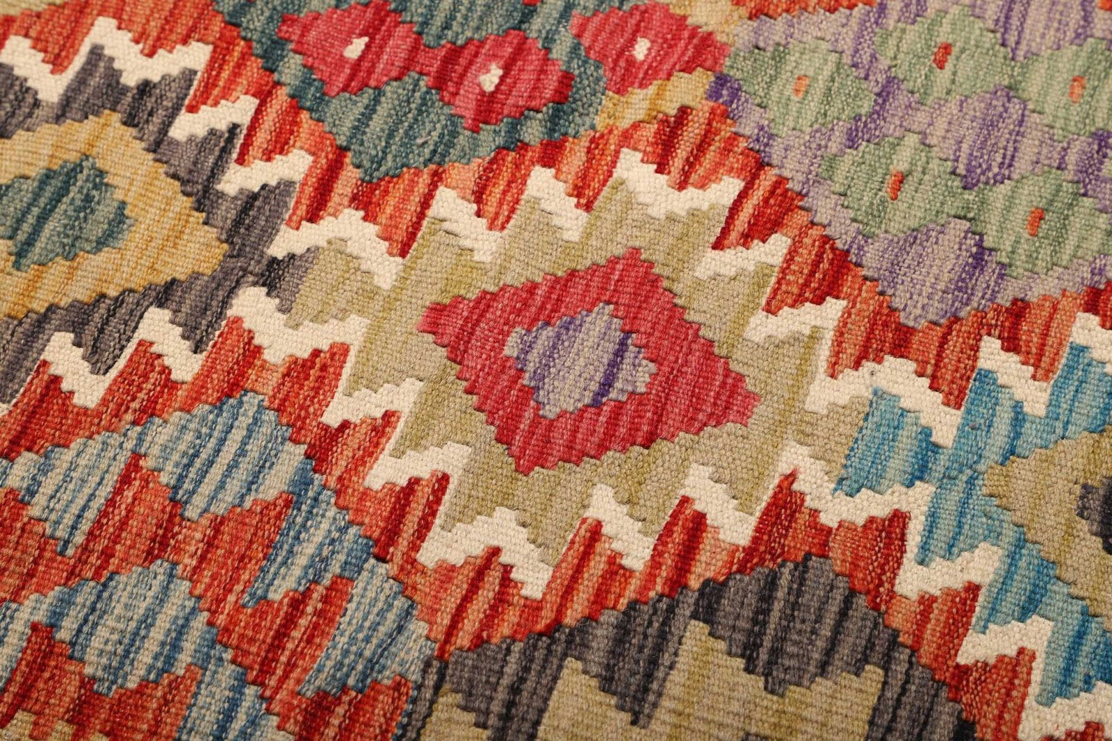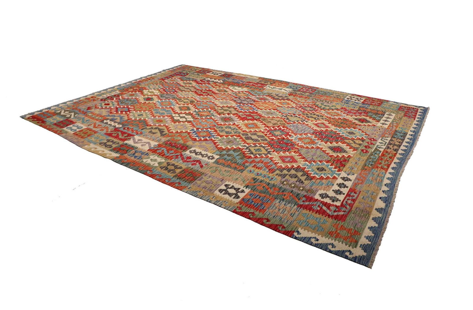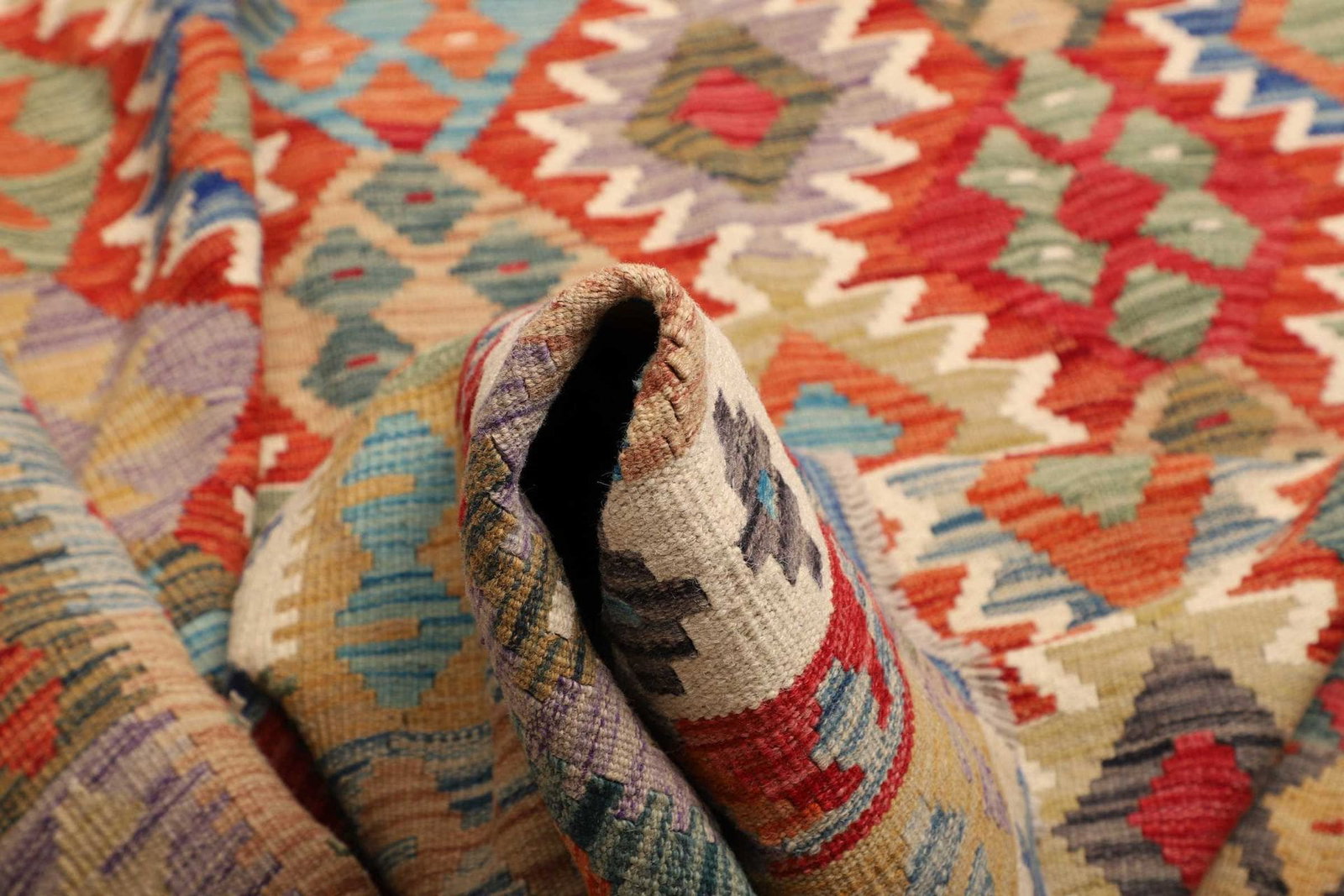 Der Teppich zeichnet sich durch seine hochwertige Wollqualität aus, die nicht nur für ihre Langlebigkeit bekannt ist, sondern auch für ihre Fähigkeit, Wärme zu speichern und eine angenehme Fußwärme zu bieten. Die handgewebte Technik garantiert ein einzigartiges und authentisches Produkt, das sich deutlich von maschinell hergestellten Teppichen abhebt. Mit seiner robusten Struktur und dem angenehmen Griff stellt dieser Kelim Teppich eine hervorragende Wahl für alle dar, die Wert auf Qualität und Nachhaltigkeit legen.