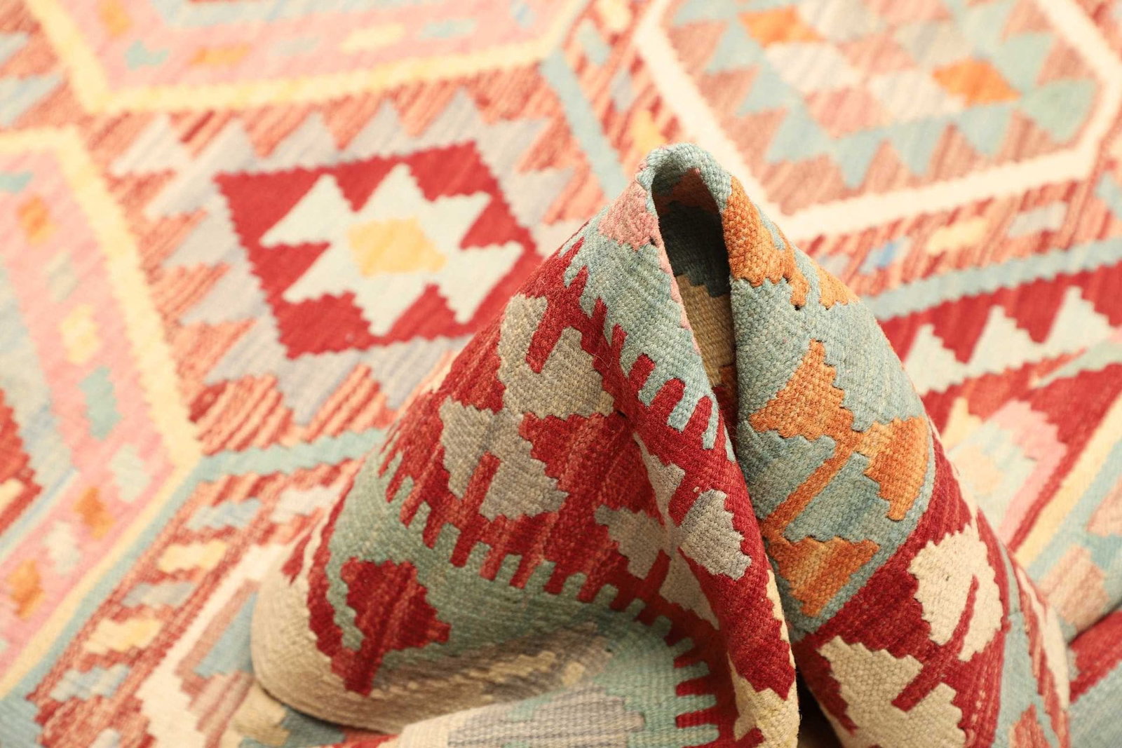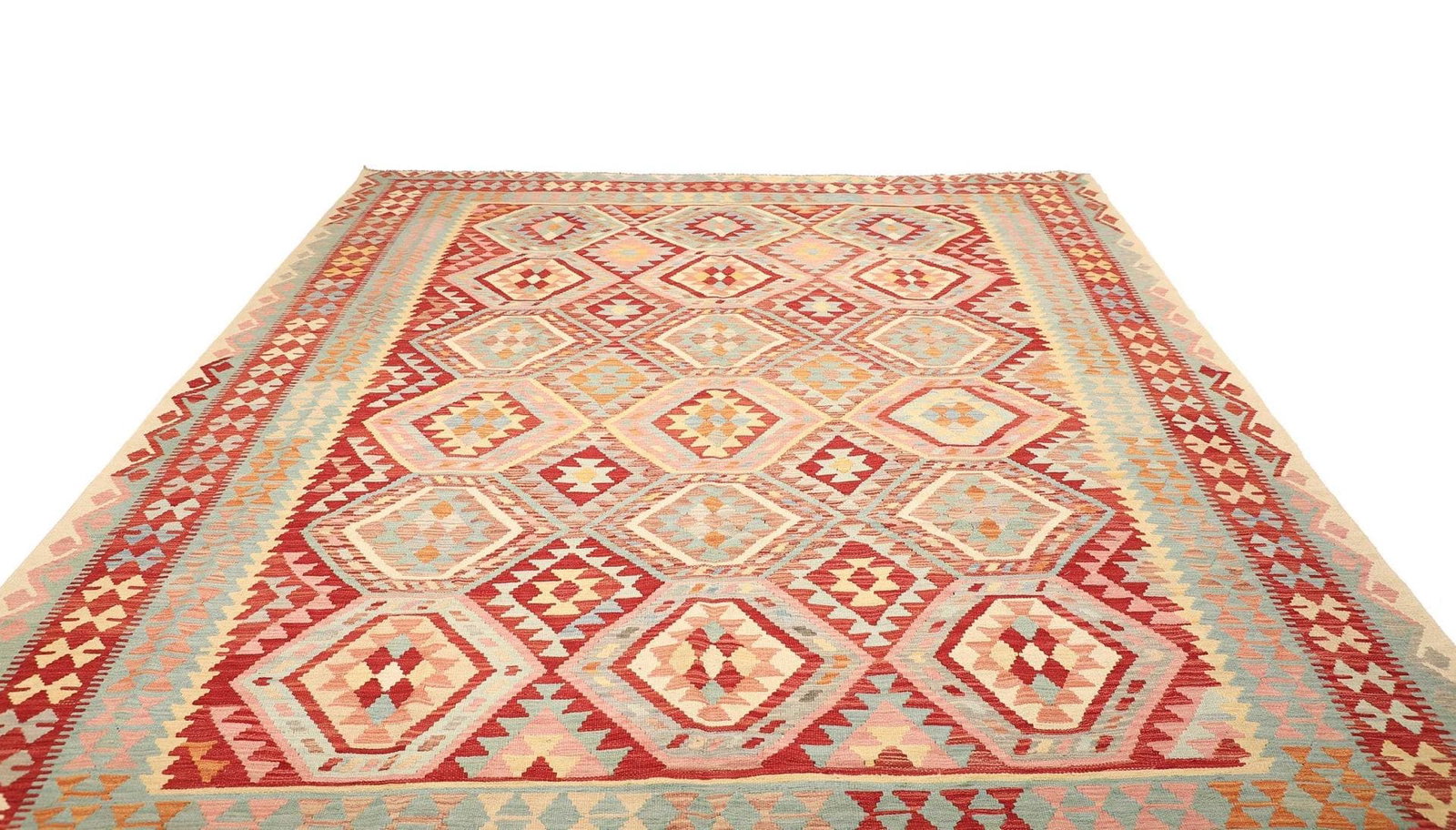 1169$Ursprünglicher Preis war: 1169$992$Aktueller Preis ist: 992$Handgewebter Kelim Teppich | Knotendichte: ca. 200.000 Knoten/m² | Material: 100% Schurwolle und 100% Baumwolle | Größe: 263 x 324 cm | Herkunft: Pakistan | Florhöhe: ca. 5 mm | Ideal für moderne und rustikale Einrichtungsstile