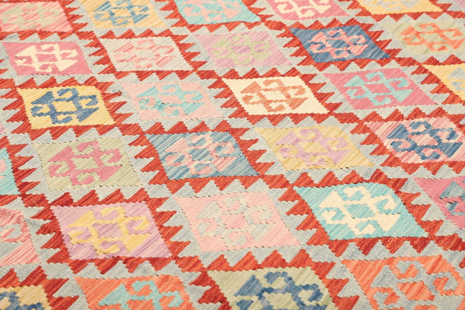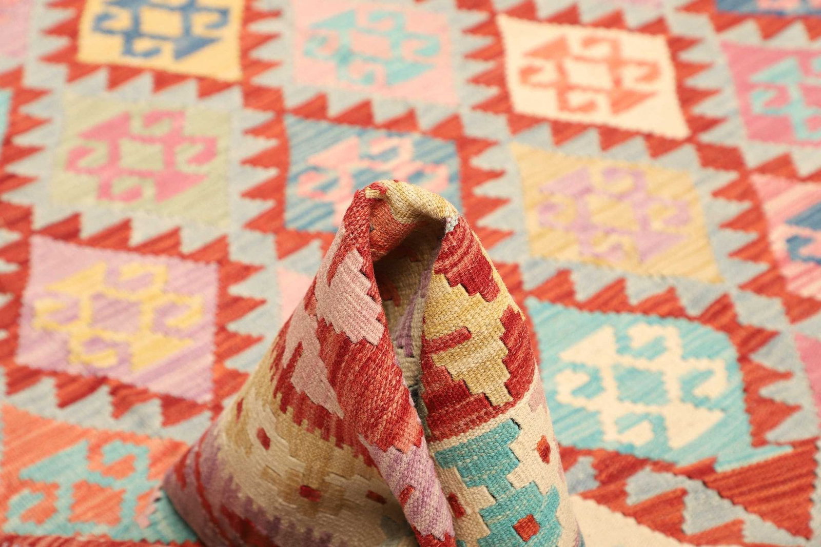 Ein weiterer Vorteil des Kelim Teppichs ist die einfache Pflege. Er kann leicht gereinigt werden, was ihn ideal für stark frequentierte Bereiche macht. Darüber hinaus ist die Strapazierfähigkeit der Schurwolle ein großer Pluspunkt; sie sorgt dafür, dass die Farben auch nach Jahren ihre Strahlkraft bewahren. Mit seinem rustikalen Design und der hochwertigen Verarbeitung stellt dieser Teppich eine Bereicherung für jeden Haushalt dar und eignet sich auch bestens als Geschenk für Liebhaber von Kunst und Tradition.
