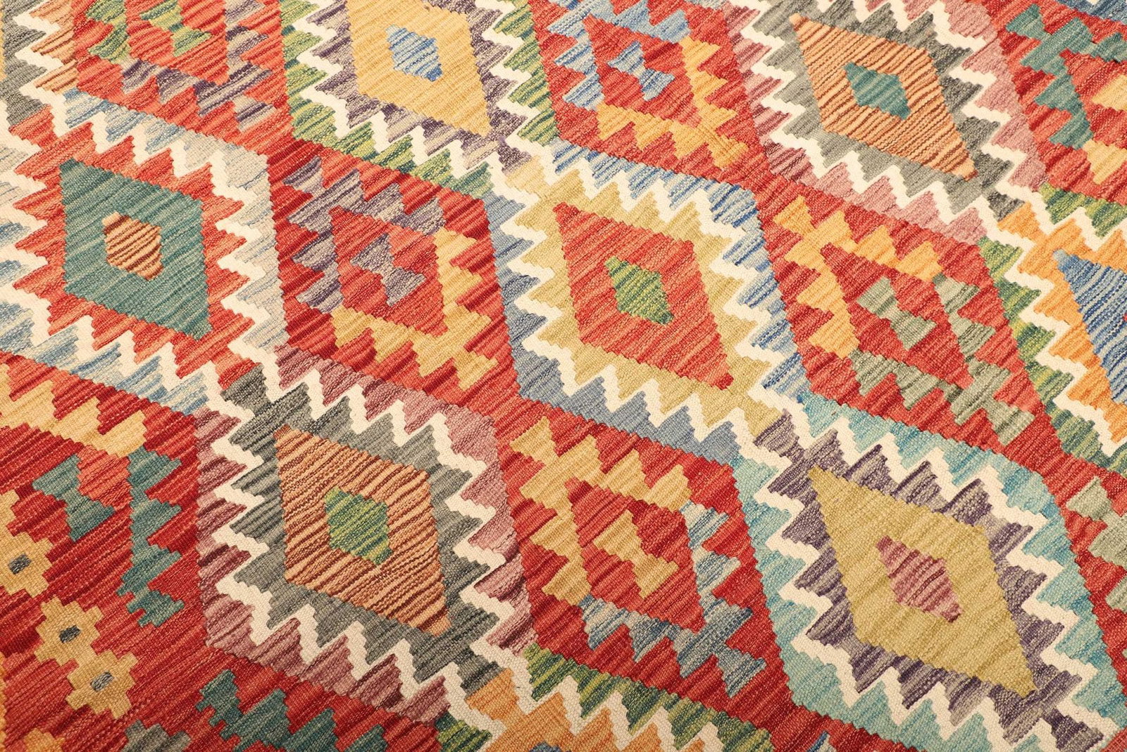 Darüber hinaus hat ein handgewebter Kelim Teppich eine unverwechselbare Haptik und Ausstrahlung, die das Ambiente eines Raumes maßgeblich beeinflusst. Jeder Teppich ist ein Unikat, das aufgrund seiner individuellen Merkmale und der verwendeten Materialien, Geschichte und Charakter ausstrahlt.