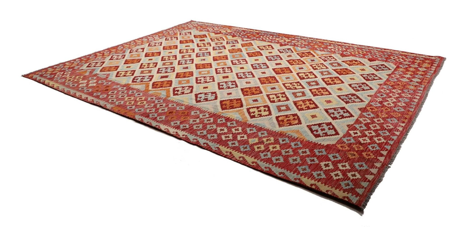 Kelim Teppich | Größe: 273 x 350 cm | Knotendichte: ca. 200.000 Knoten/m² | Flor: 100% Schurwolle | Kette: 100% Baumwolle | Verarbeitung: Handgewebt | Herkunft: Pakistan | Höhe: ca. 5 mm
