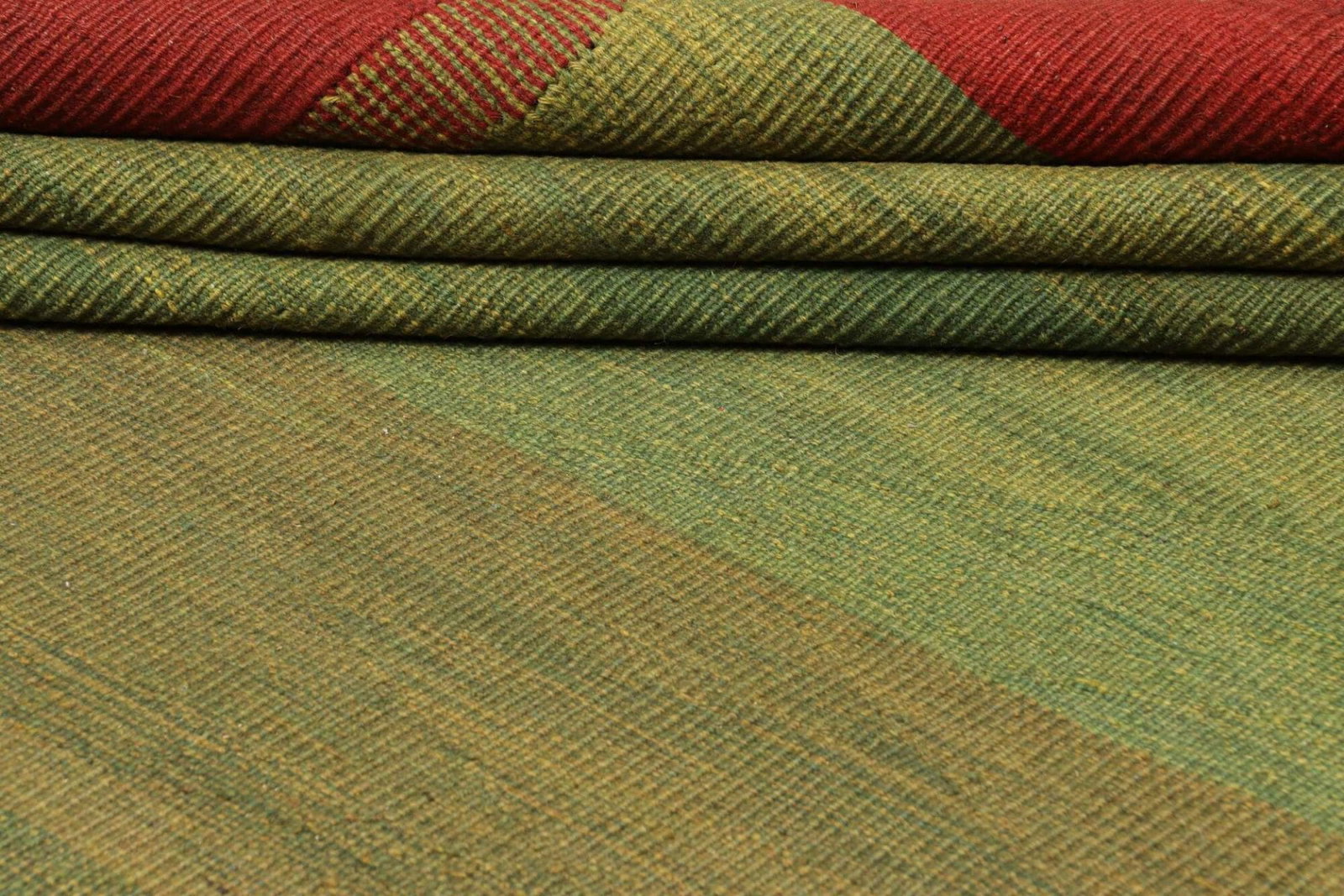 Der Kelim Teppich besteht aus feiner Wolle, die für ihre Langlebigkeit und fantastische Farbaufnahme bekannt ist. Wolle ist nicht nur ein natürliches Material, sondern auch schmutzabweisend und pflegeleicht, was ihn zu einer idealen Wahl für jeden Haushalt macht. Die handgewebte Technik gewährleistet, dass jeder Teppich ein Unikat ist. Durch das traditionelle Webverfahren wird die charakteristische Struktur und das besondere Muster des Kelims hervorgehoben.