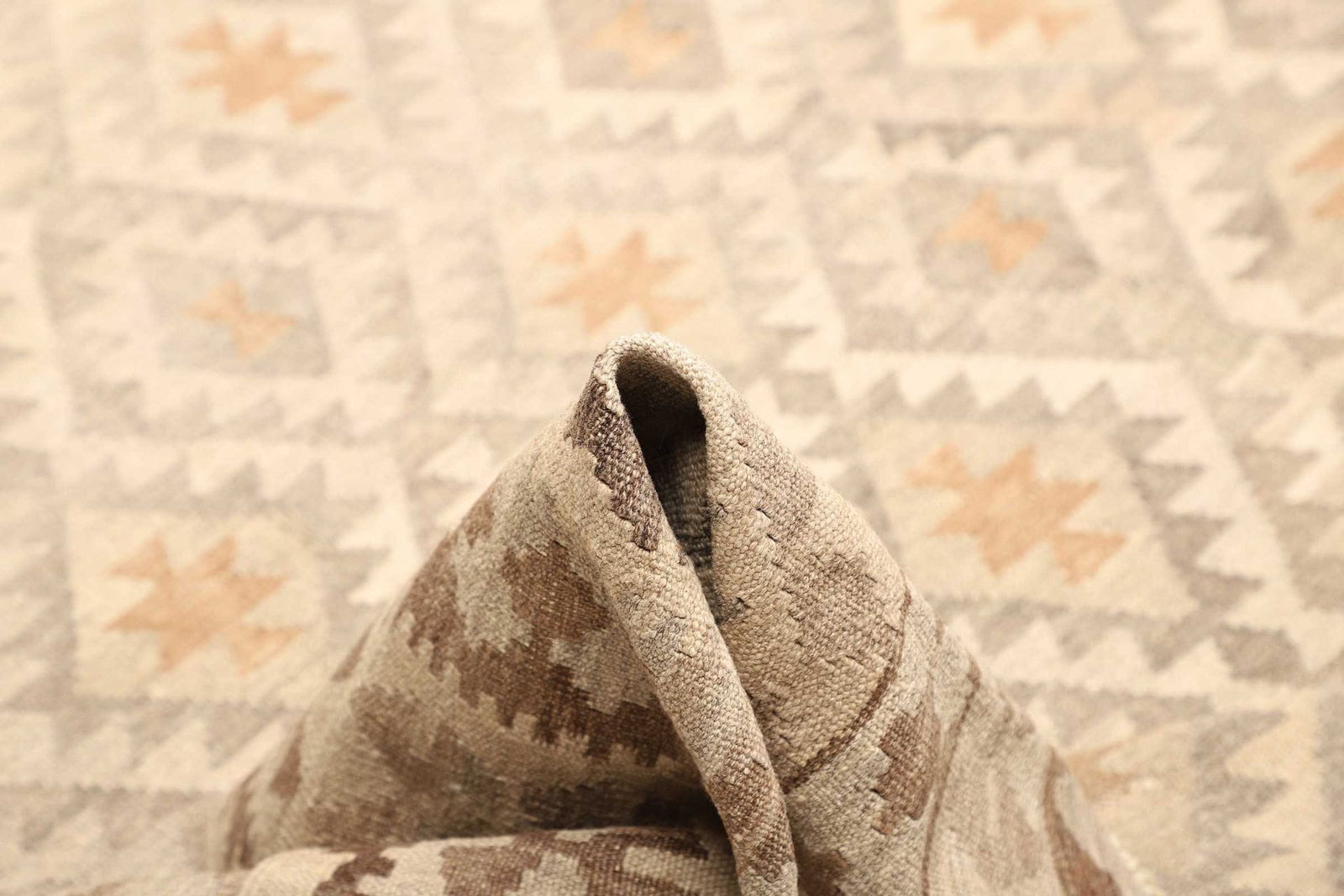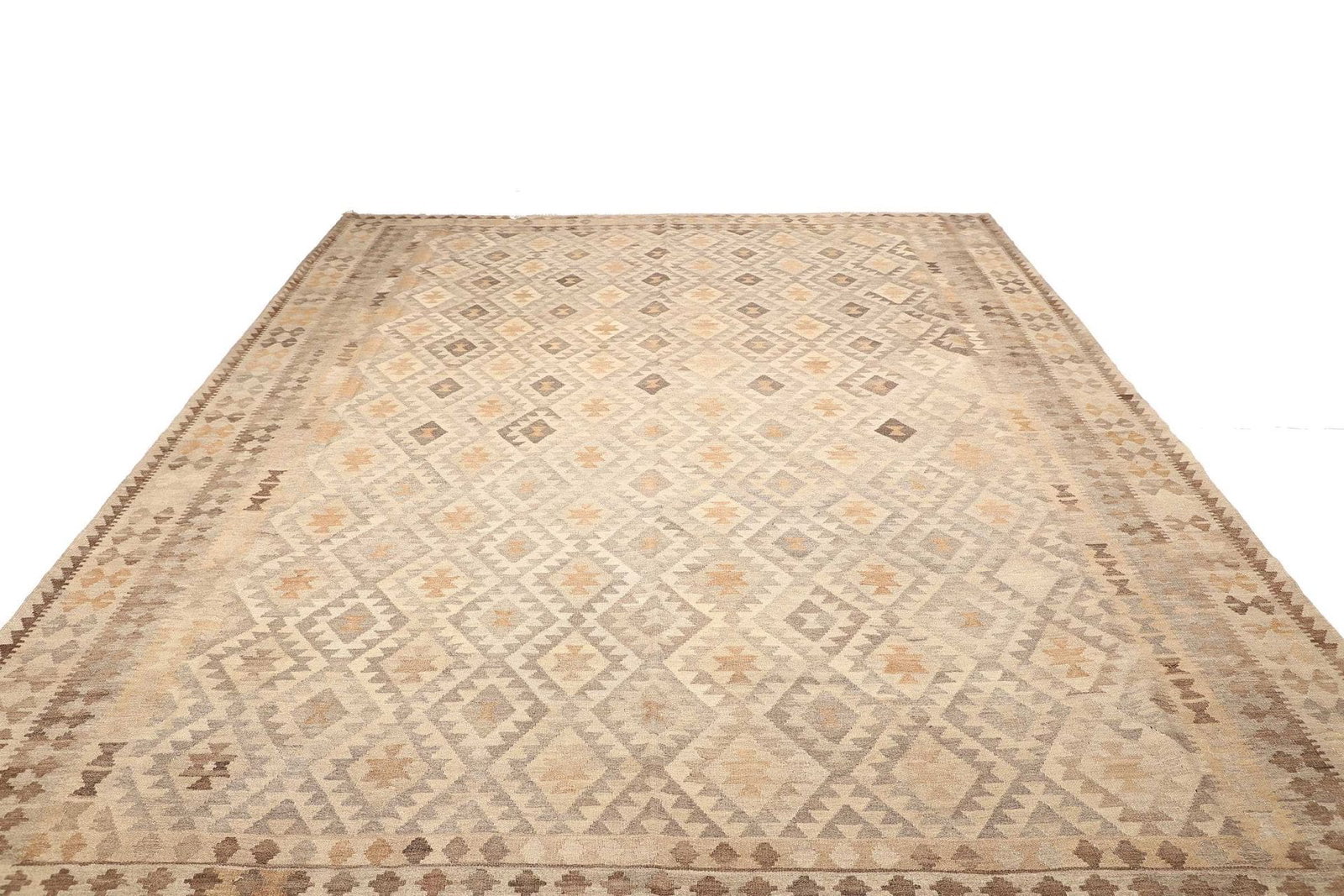 971$ In den WarenkorbHandgewebter Ghashgai Kelim Teppich aus Wolle in Naturfarbe – 290 x 200 cm