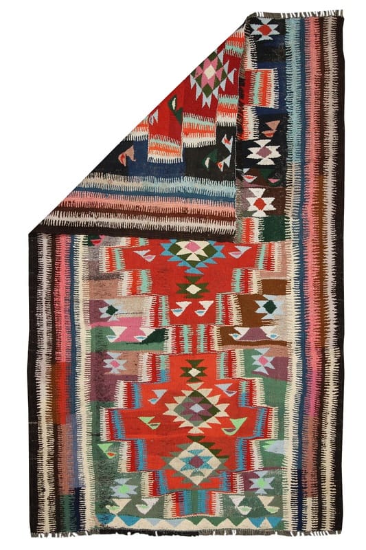 Oft finden sich Elemente wie Rauten, Streifen oder florale Designs, die in harmonischer Weise angeordnet sind, um ein optisches Gleichgewicht zu schaffen. Das Zusammenspiel von Färbetechnik und Webtechnik unterscheidet sich von Teppich zu Teppich, so dass jeder Kelim ein einzigartiges Kunstwerk darstellt.