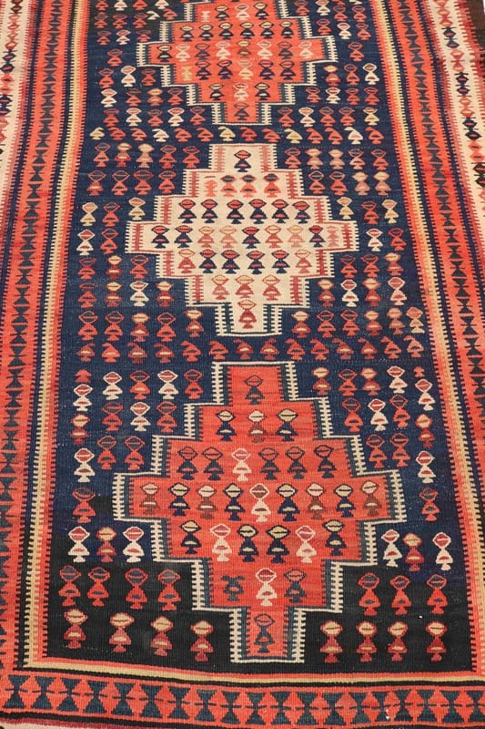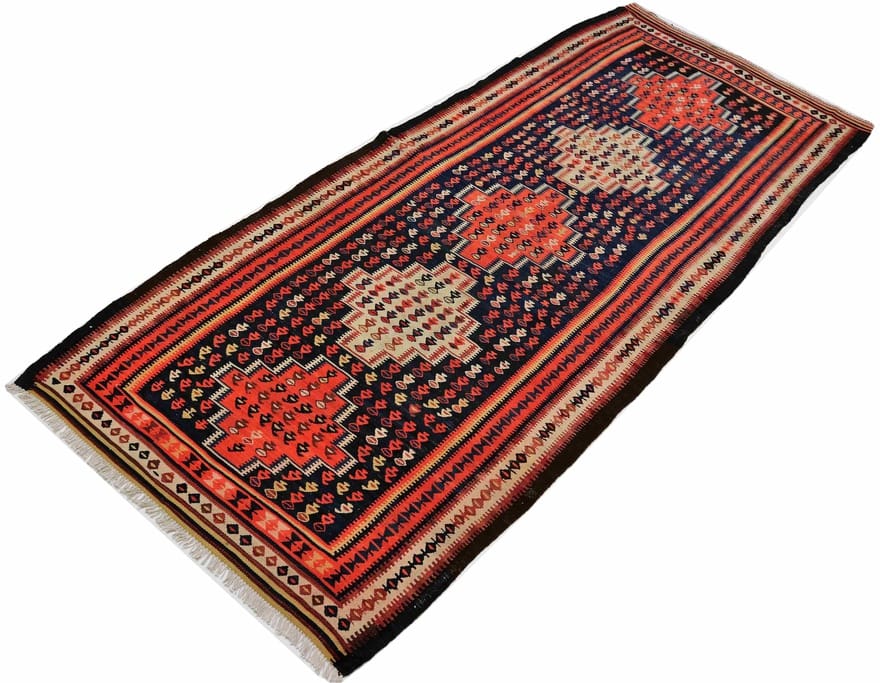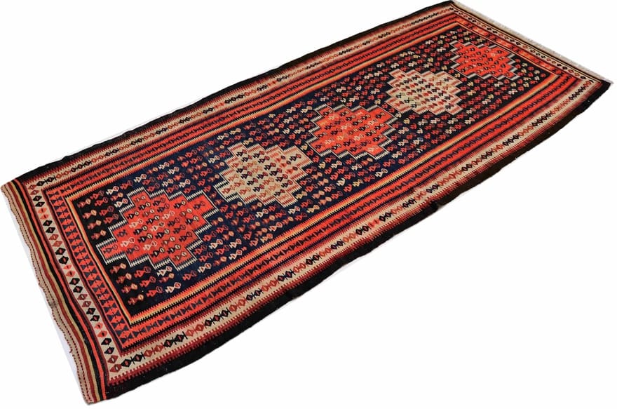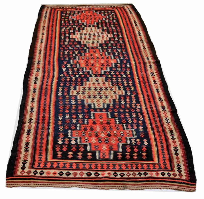Antiker Kelim-Teppich | Handgewebt | Farbe: Multifarbe | Größe: 317×134 cm | Ursprung: Iran/Persien | Flor: Wolle | Kette: Wolle | Dicke: ca. 8 mm | Gewicht: ca. 12 kg
