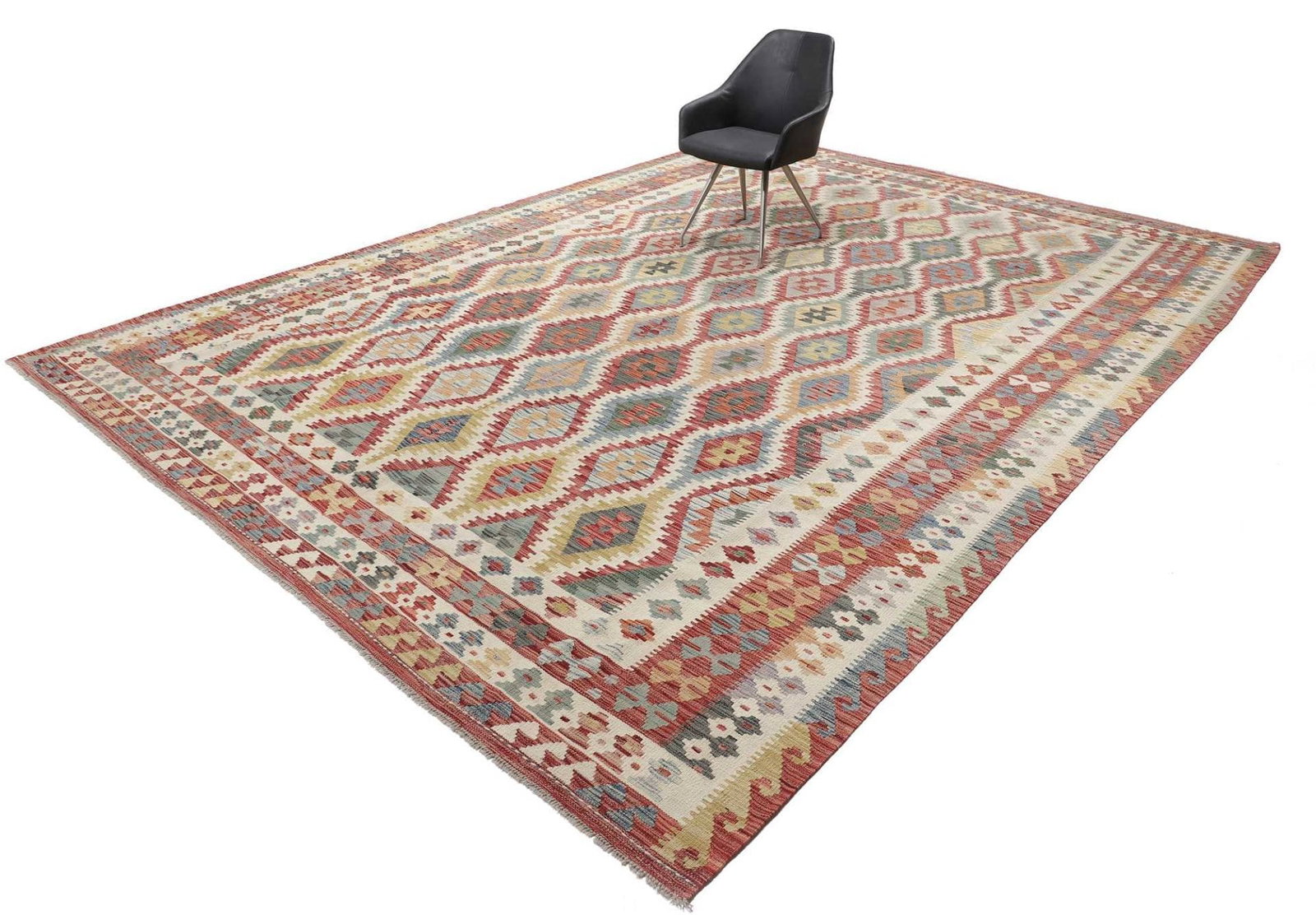 1916$Ursprünglicher Preis war: 1916$1624$Aktueller Preis ist: 1624$Handgewebter Kelim | Größe: 319 x 440 cm | Knotendichte: ca. 200.000 Knoten/m² | Flor: 100% Schurwolle | Kette: 100% Baumwolle | Herkunft: Pakistan | Höhe: ca. 5 mm | Rustikales Flair für moderne Wohnräume